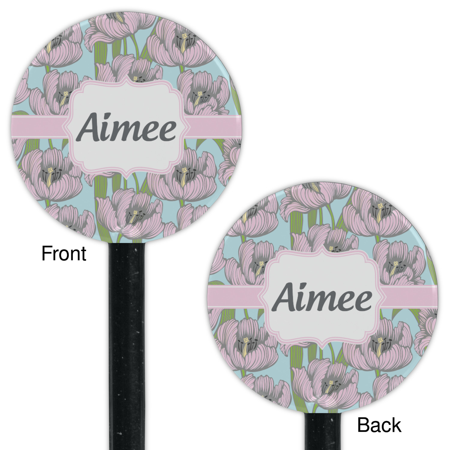 The ribbon and label are coordinated in the soft pink, while the personalization is done in the darker grey.