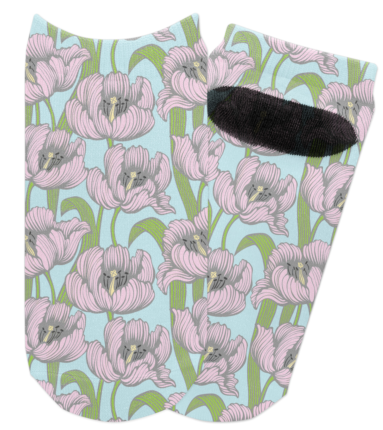 Go into the design center to get started the designing fun! Pick a fun pattern and even add a graphic to go on top of your socks!
