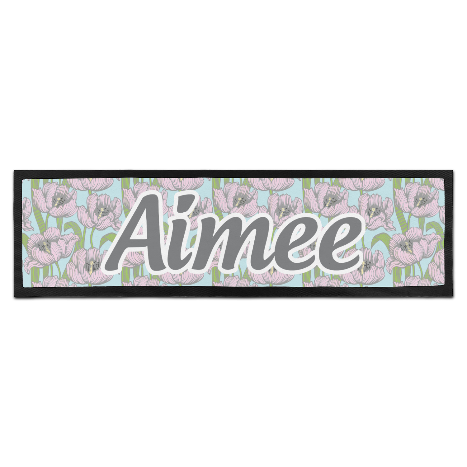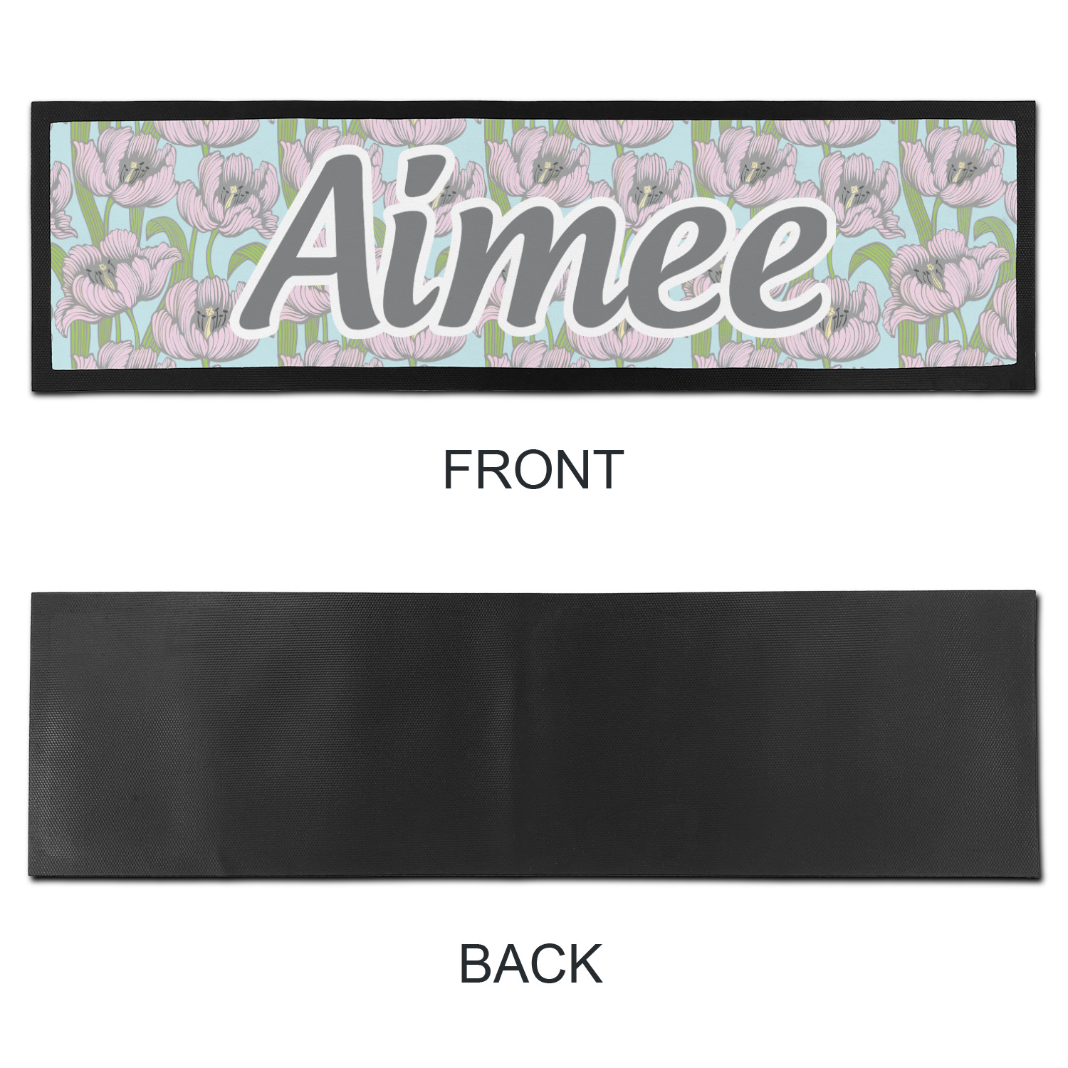 The ribbon and label are coordinated in the soft pink, while the personalization is done in the darker grey.