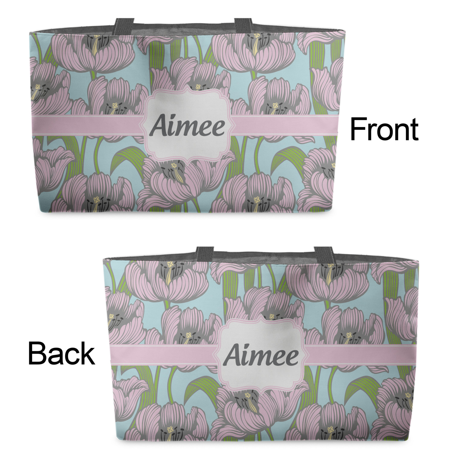 You can design the totes with a design on the front and another one on the back. The two designs can be identical or completely different. The choice is yours.