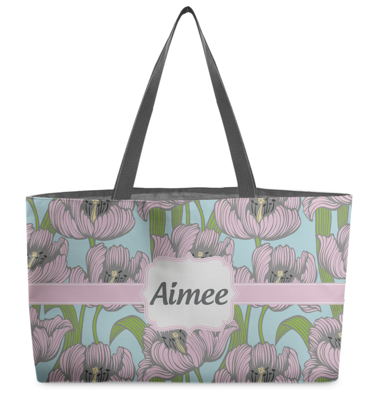 These beach totes are handmade here in the USA. Fabric is printed with your design. The tote is then sewn from the fabric pieces, lining and handles added.