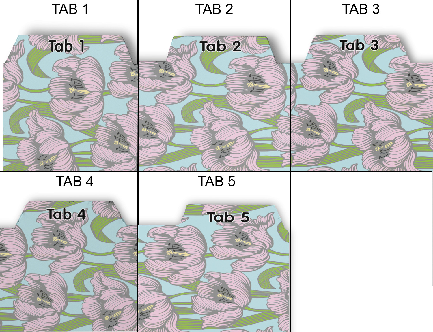 Whether you use binders at school or at work, we have designs to suit all of them. Available in 5 or 6 tab sets, you are sure to find a set to suit your needs. The back of each one is white and can be used to take notes, write vital information on, etc.