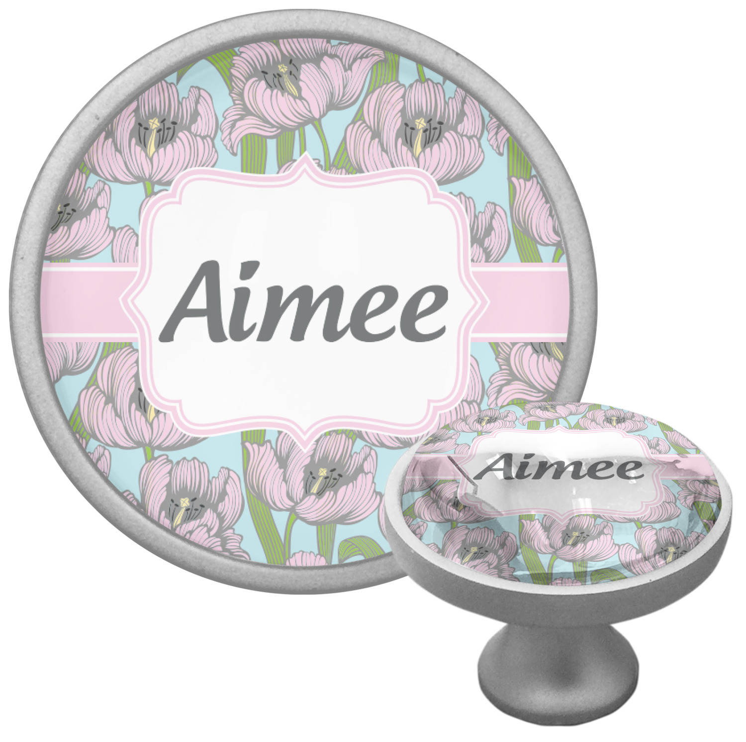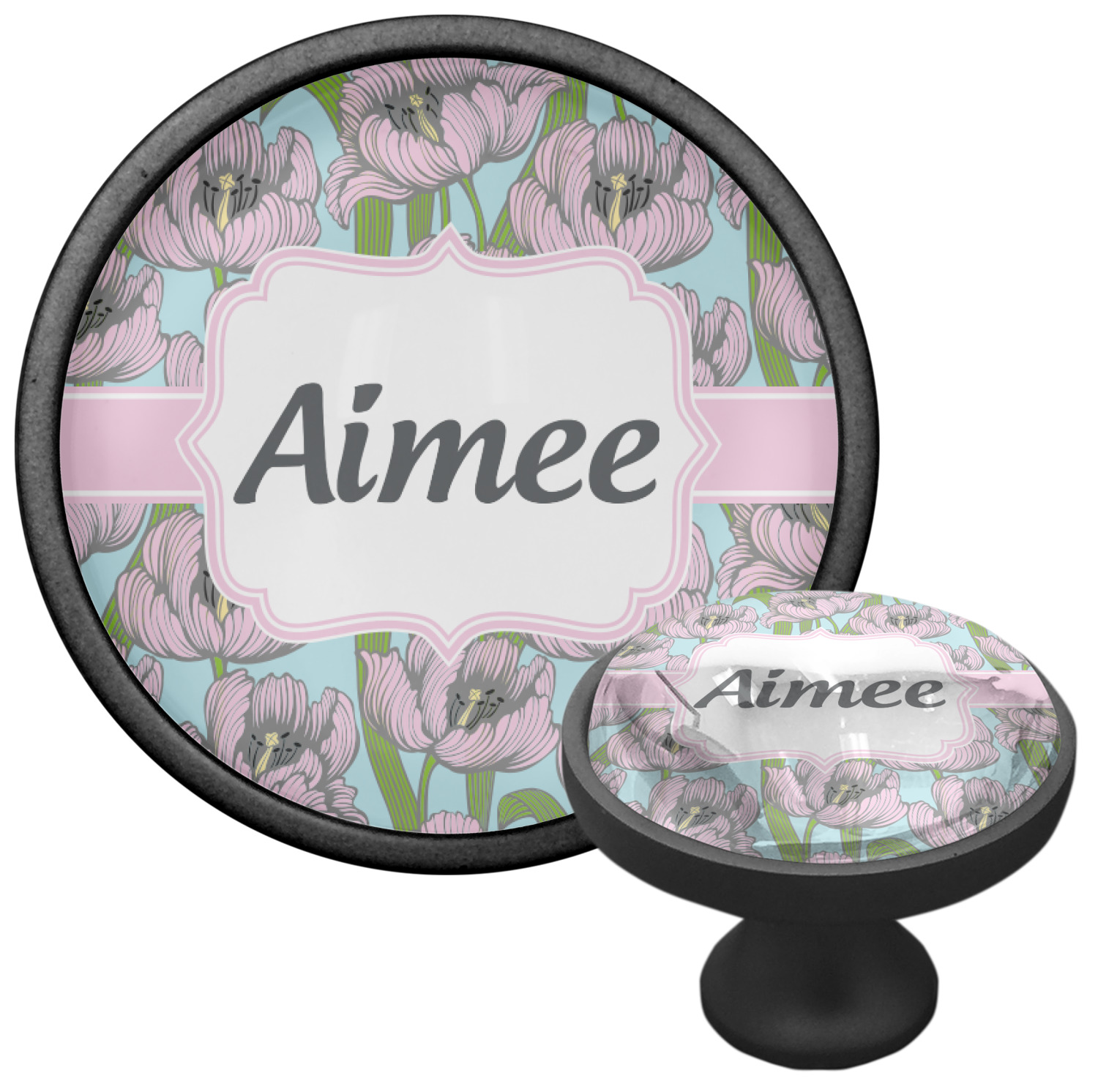 We sell these cabinet pulls in two different colors to better match your room's color scheme. We offer an oil-rubbed bronze base that is black in color, and a satin nickel option, which has a silver color. Your design is displayed across a high gloss vinyl insert that is placed on top of these cabinet handles. We then place a 1 inch thick glass cabochon atop the design, which seals the cabinet knob and makes the colors of your customization stand out. These custom cabinet knobs are approximately 1.3 inches in diameter. Your purchase includes a 1 inch screw that can be used to mount the knob to any cabinet in your home.