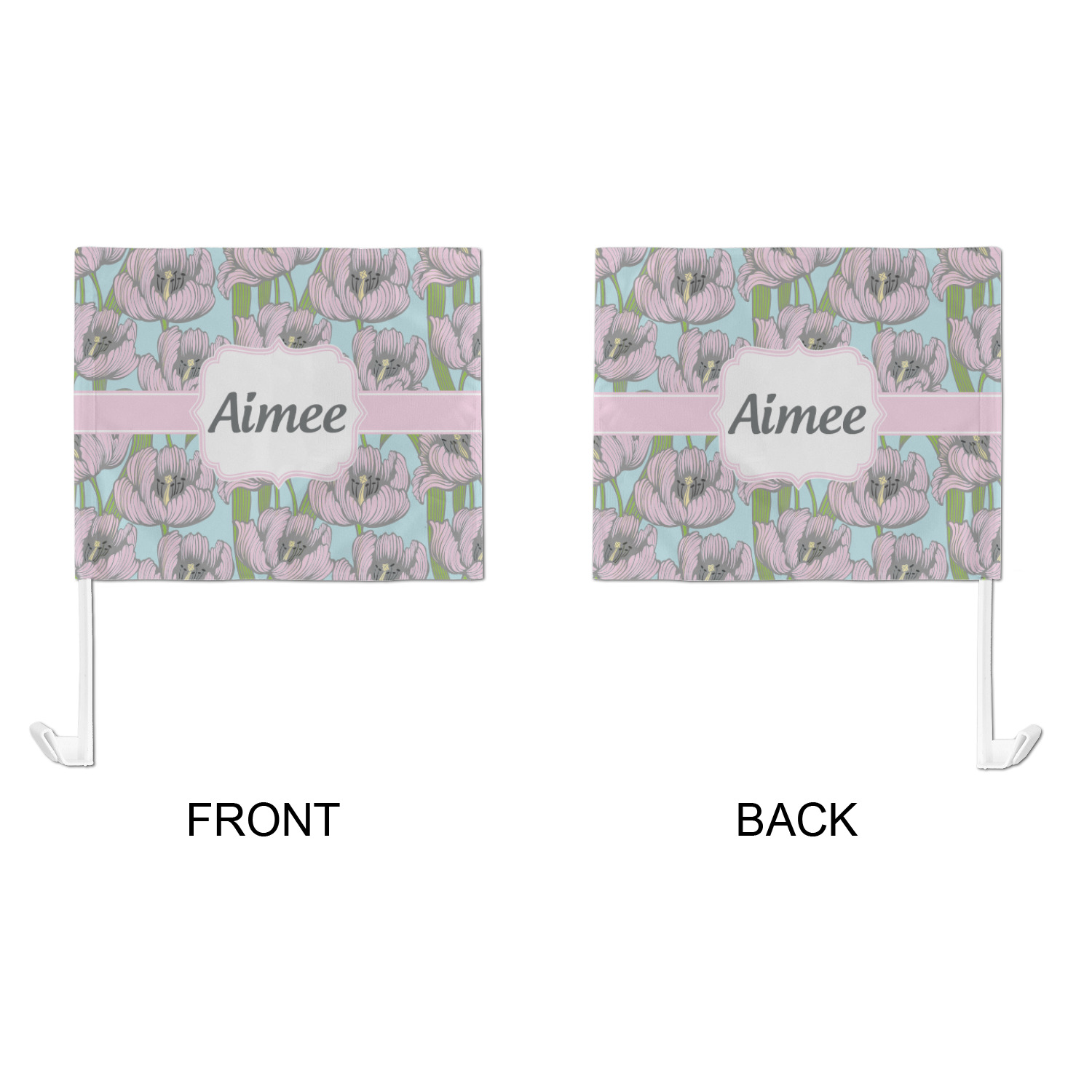 Our personalized flags are made from a durable, yet lightweight cloth that will proudly bear your logo or design of choice, while withstanding the outside elements. We have two size options - 8" x 11" and 11" x 15". Both come with a flag pole which includes a clip that secures the pole to the side window, whether it is rolled up or down. The flags are printed on both sides to display your design from all directions.