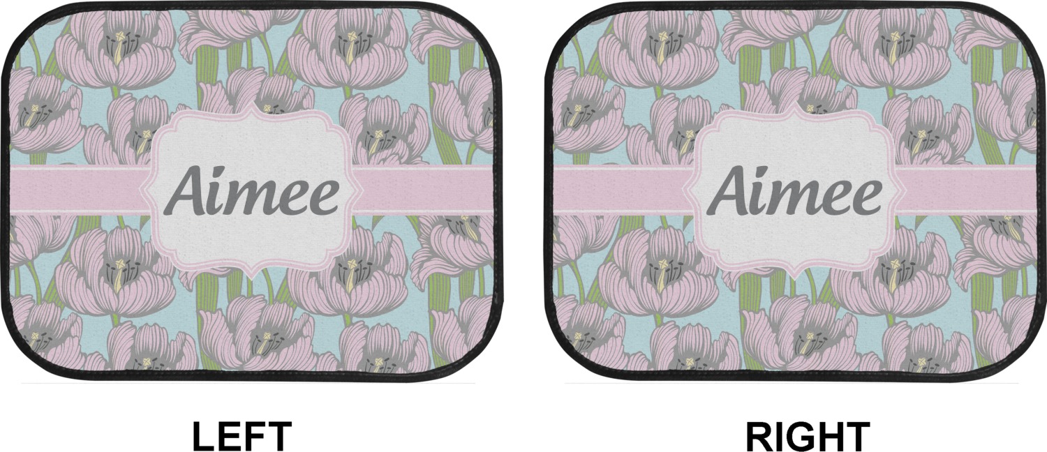 We craft our auto floor mats mats from polyester, apply a black finish to the edges, and lined at the bottom to prevent slippage. These mats protect your floors from grass, mud, and any accidental spills. We display your personalized design on the front face of each mat. The sizes of these car floor liners are standardized to provide a versatile fit for all vehicles. The front rows car mats measure at 17 by 26.5 inches, while the back rows measure at 17 by 13 inches. We sell three packages of car floor mats. You can purchase a pair of front row car mats, a pair of back row car mats, or a set of front row and back row car mats. To make an informed purchase, we recommend measuring the surface area of your car floors.