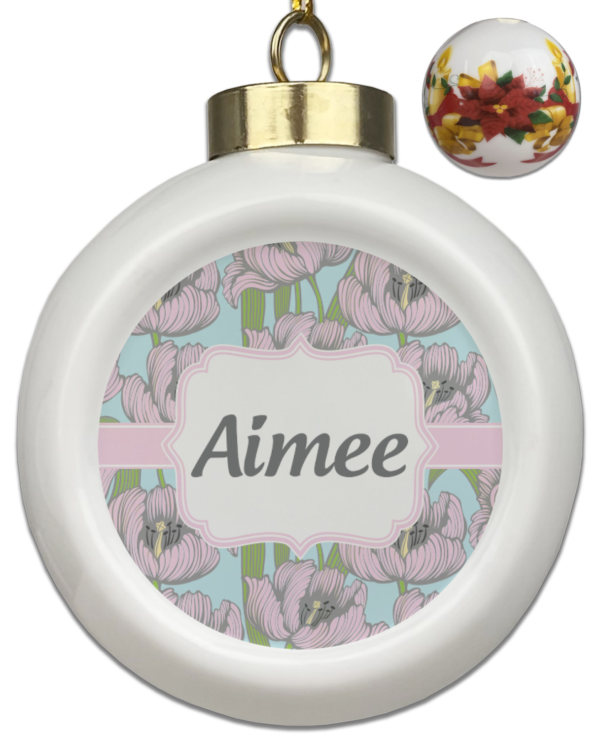 Our Christmas ornaments are a unique ceramic ball shape with a twist as it has a flat face to display your custom design! Select from one of our two design types - Christmas Tree or Poinsettia Garland - to adorn the curved back of your personal design. Each ornament measures 3H x 2.5W x 2D accompanied with a gold string accent for finishing touches to hang on your beautiful Christmas tree!
