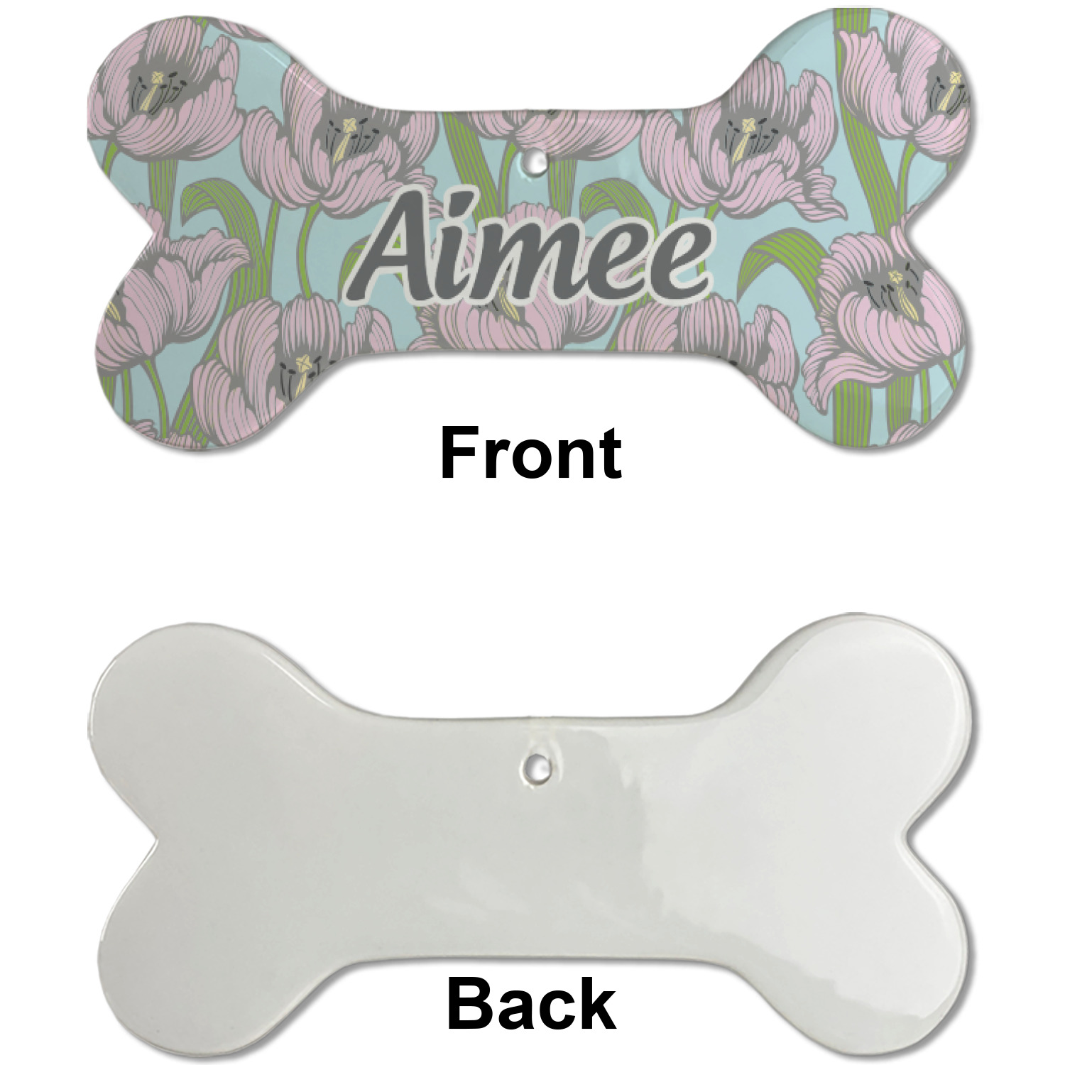 Our dog Christmas ornaments are a ceramic material with a bone-shaped structure hung horizontally. We offer two printing styles to personalize your furry friend's ornament! Choose a one-sided printing, perfect for wall decor, memorial accessory, or doghouse nameplate! Create a double-sided ornament perfect for adorning the Christmas tree. Each dog bone ornament is approximately 4.75" x 2.25" and is printed here in the USA.