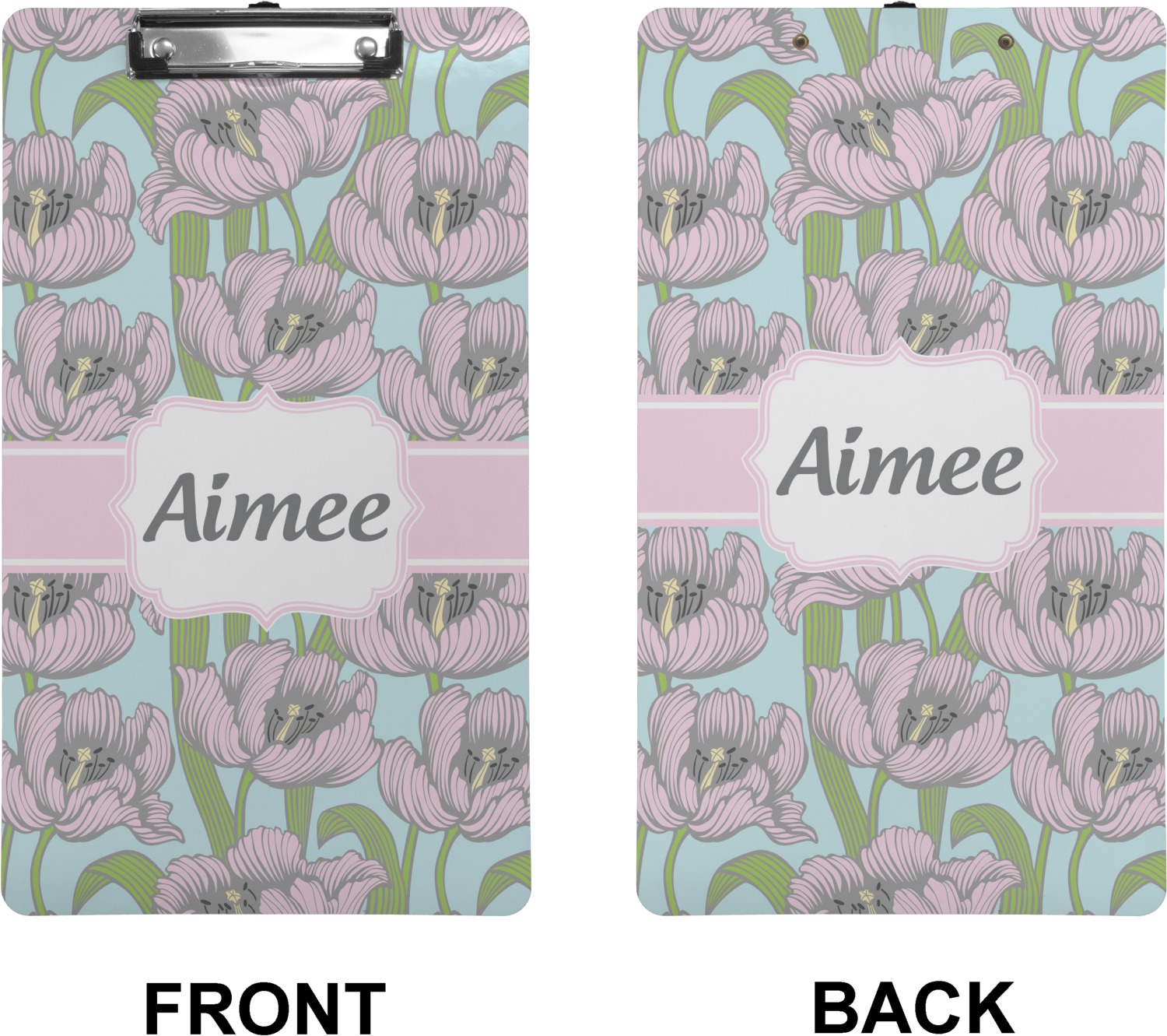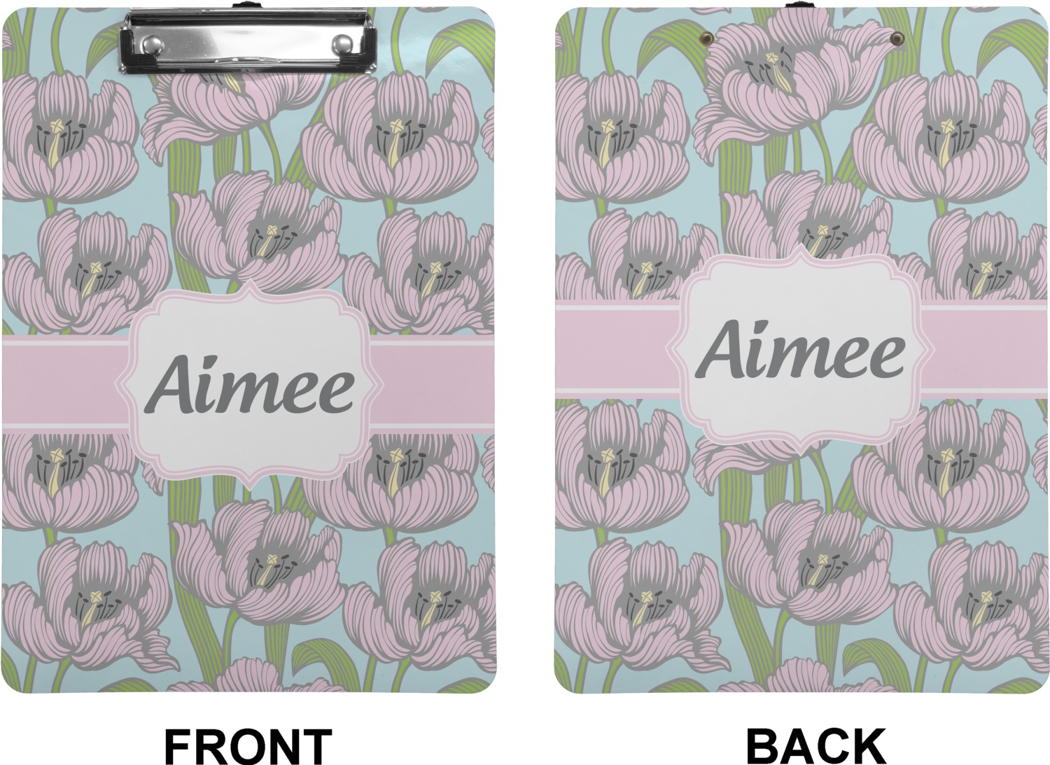 These custom clipboards are made from a strong hardboard and are coated with a glossy finish that accentuates the colors of your design. Alongside a retractable hook at its top, these decorative clipboards also feature sturdy clips to secure several sheets of paper. We sell these clipboards in two separate sizes. Our letter size measures at 12.5" L x 9" W, while our legal clipboard is approximately 15.5" L x 9" W. On both models, your personalization is printed on both sides of this clipboard and can be customized individually.
