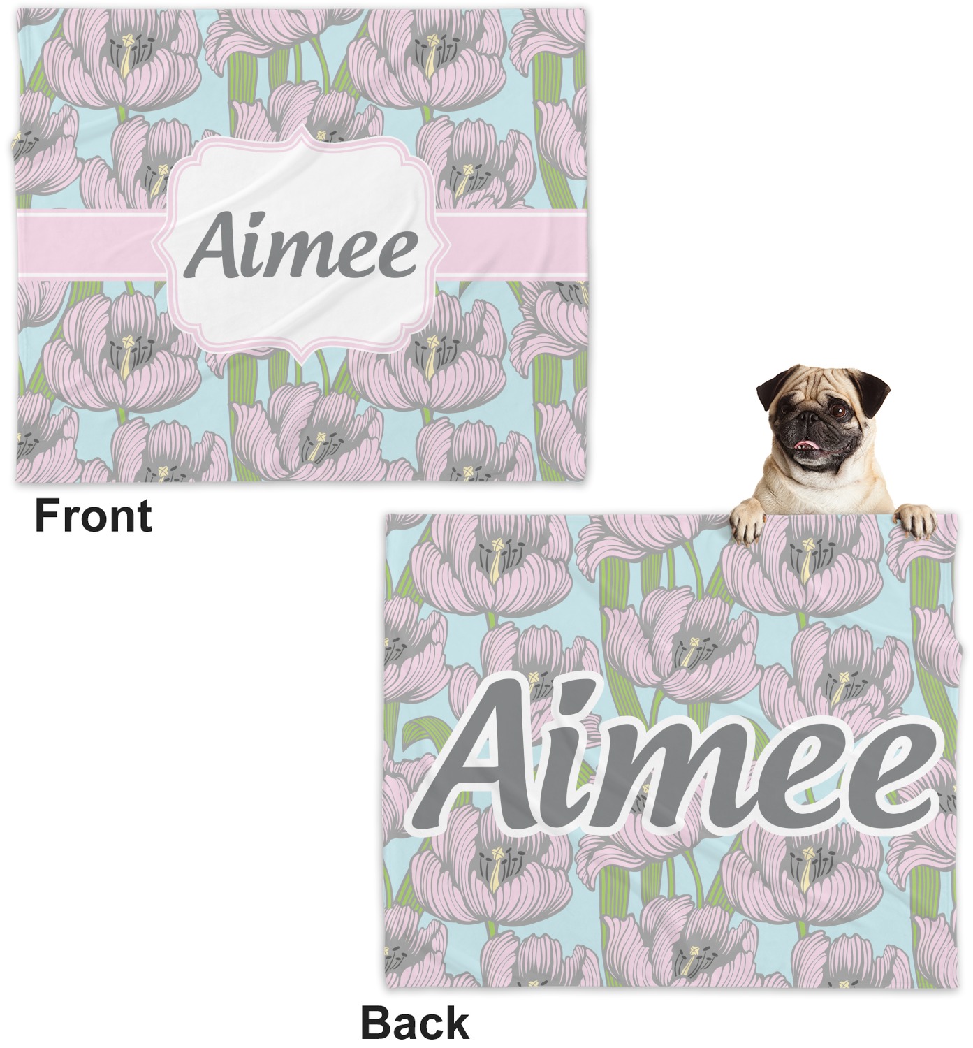 These dog blankets are crafted from a gentle, soft-to-the-touch, minky material. We print your customizations, either matching or differing, on both the top and underside of the blanket. These personalized dog blankets are available in two sizes: regular and large. Our regular size, at 40" x 30", accommodates small and some medium size dogs. At 60" x 50", our large dog blanket is a better fit for bigger breeds. Though specialized for dogs, these blankets still make a thoughtful gift for your favorite feline, or any other pet in mind!