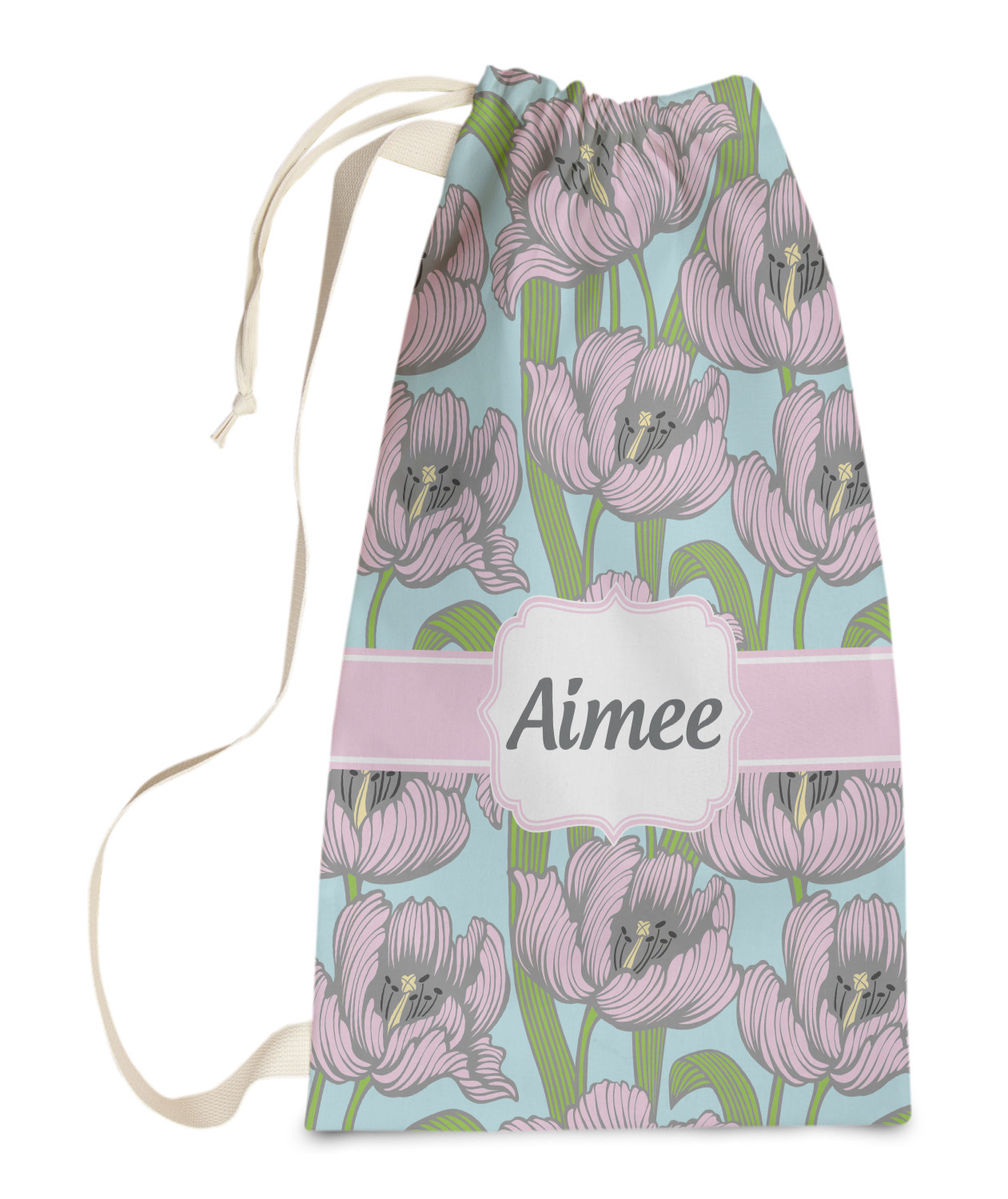 Carry your laundry in style with these customized laundry bags. Available in two sizes, featuring a natural colored woven strap and a cinch cord, these bags hold a lot of clothes or anything else you want to fit in them.