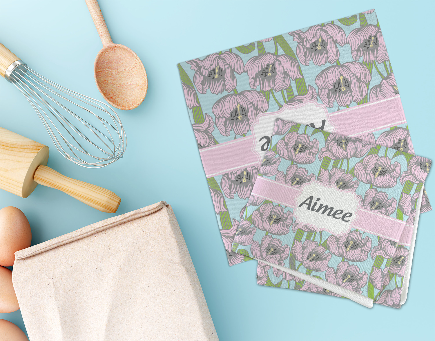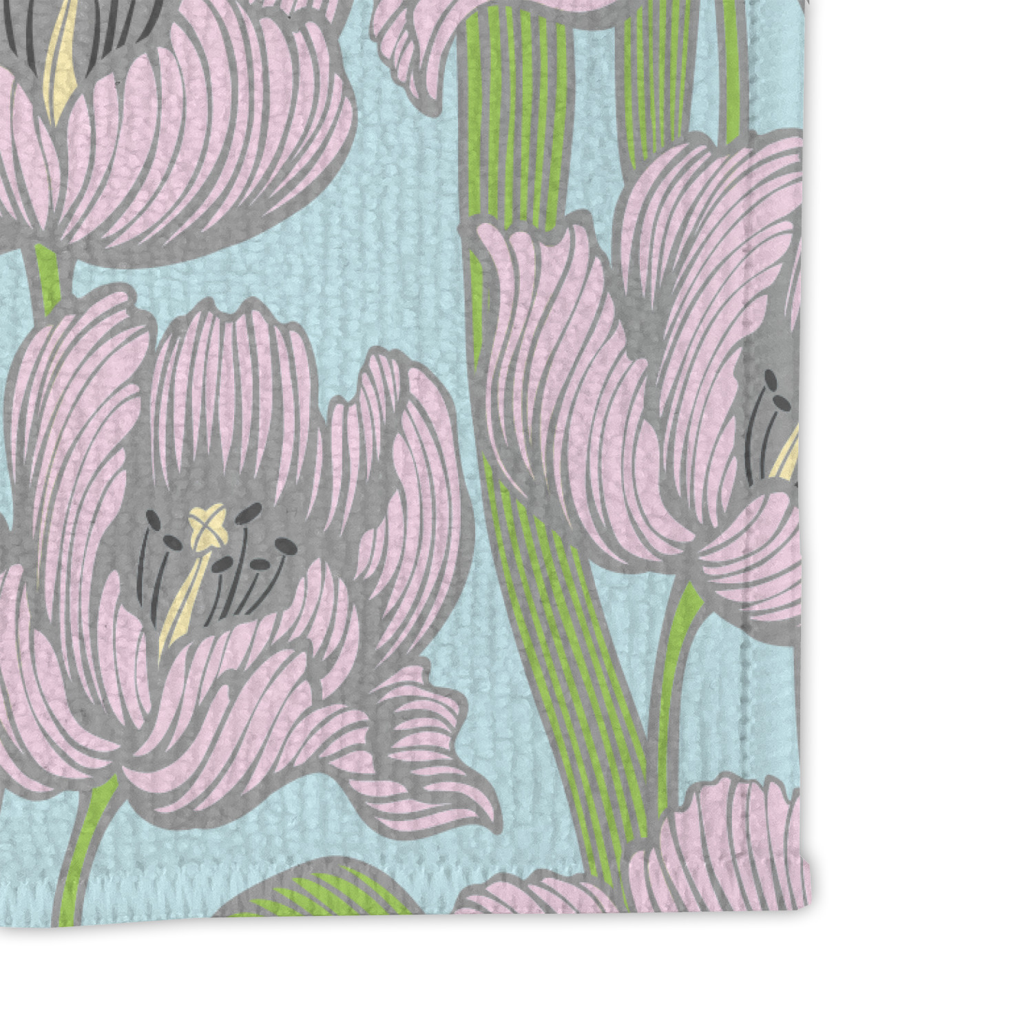 This Wild Tulips design is simply adorable in its baby soft colors of pink and blue. The wild tulip flowers are a beautiful soft pink, set on a beautiful soft blue background. The leaves are a soft green.