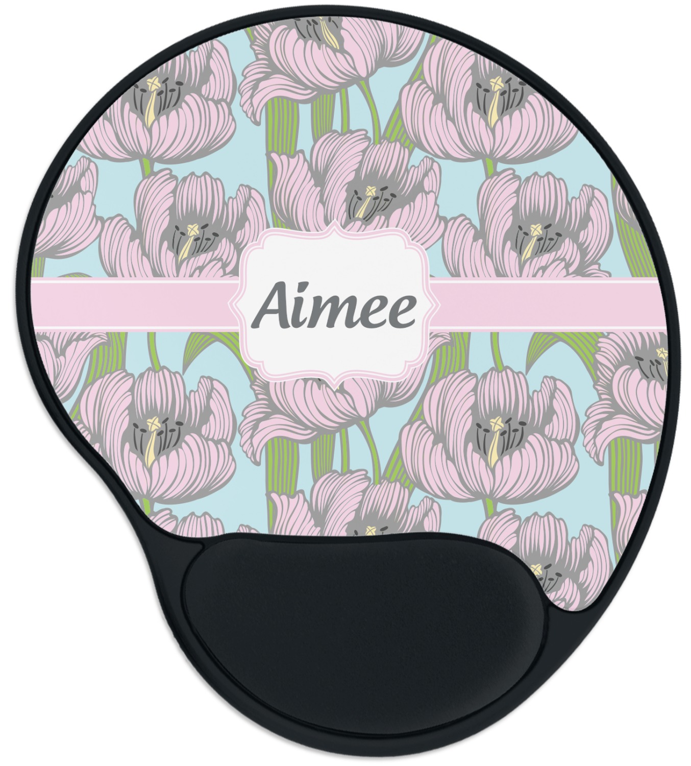The top of these personalized mouse pads are made from a polyester, while the underside is plastic. The back of these mouse mats include rubber feet to prevent any slippage while in use. A padded wrist support, made from plush memory foam, occupies the bottom section of these computer mouse pads. Your customized design is printed onto the face of this mat, with the remaining sides and support piece colored in black. The mat itself is rounded and measures at 10.25" x 9.13".