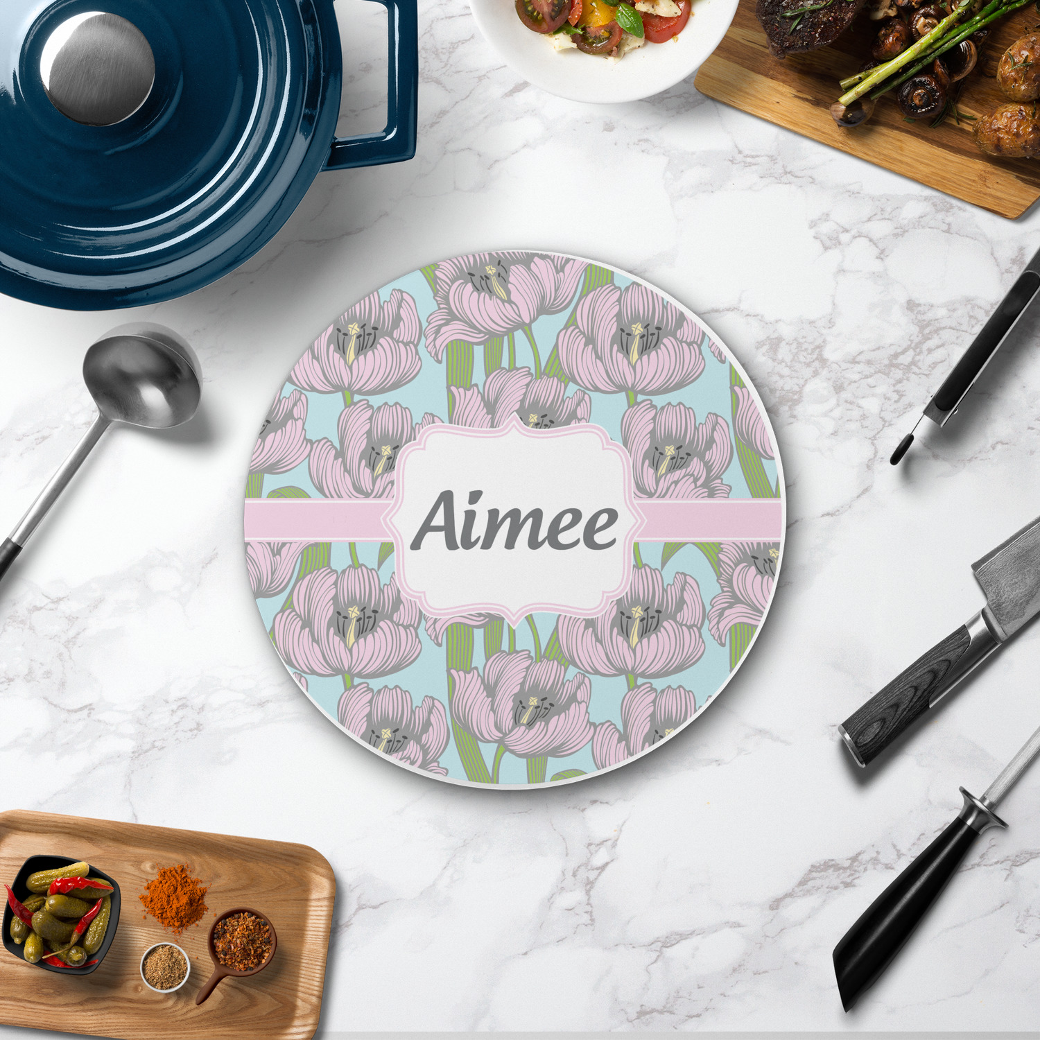 The round trivets can be customized with your own design, your own photo, or your own logo. You can add personalization, like a monogram, family name or initial to your uploaded design / art. You can also customize one of our designs and change the patterns, colors, personalization, fonts etc.