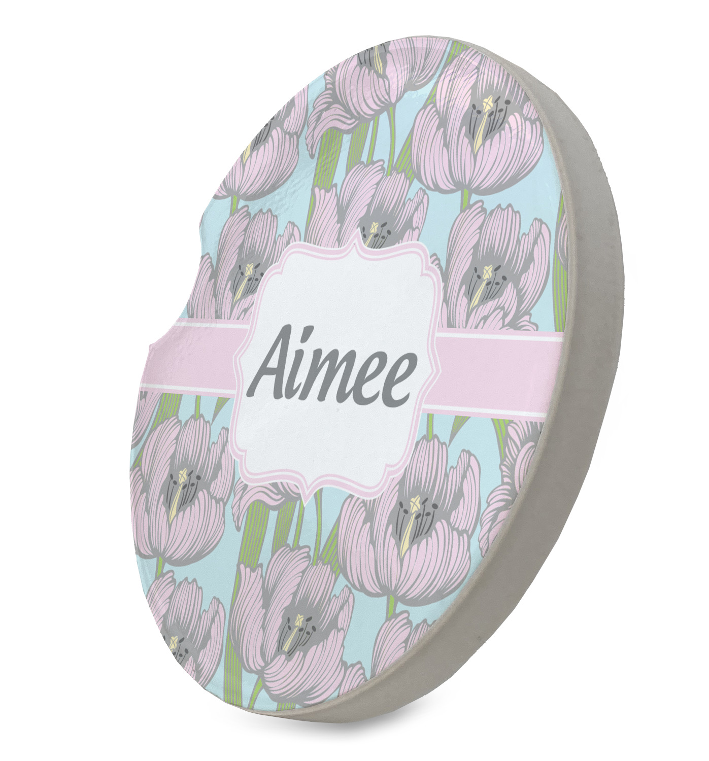 These sandstone coasters are round, robust, and feature a smoothed glossy side to exhibit your customized design. With a 2.5 inch diameter, these stone coasters will fit snugly inside most cup holders. This model also features a semi-circle shaped divot that allows for easy removal, despite the tight fit. You can purchase these car cup holder coasters in a pair, or singularly, depending on your needs.