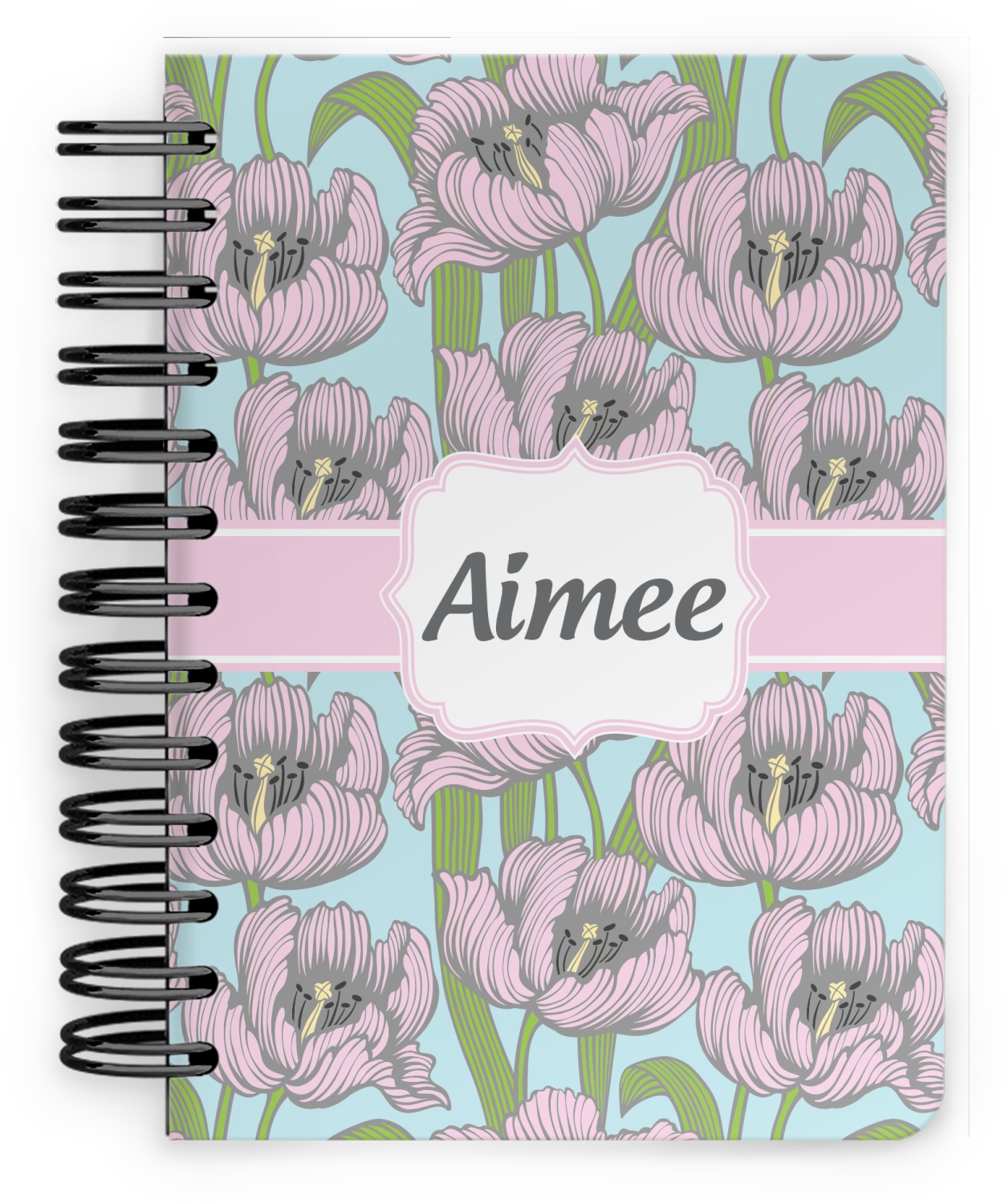 This spiral notebook includes 75 sheets of thick, ruled paper. The front and back of this custom notebook is made of a robust, laminate, plastic covering. We print your personalization on these two panels, underneath a glossy finish, which emphasizes the colors of your design. The two panels and the sheets of paper are held together by a sturdy, black coil. The paper within your bound notebook is perforated for easy, clean tearing.