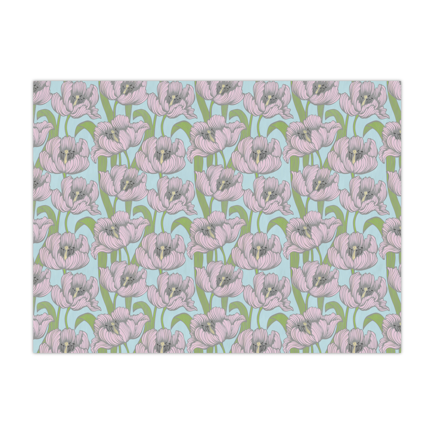 This Wild Tulips design is simply adorable in its baby soft colors of pink and blue. The wild tulip flowers are a beautiful soft pink, set on a beautiful soft blue background. The leaves are a soft green.
