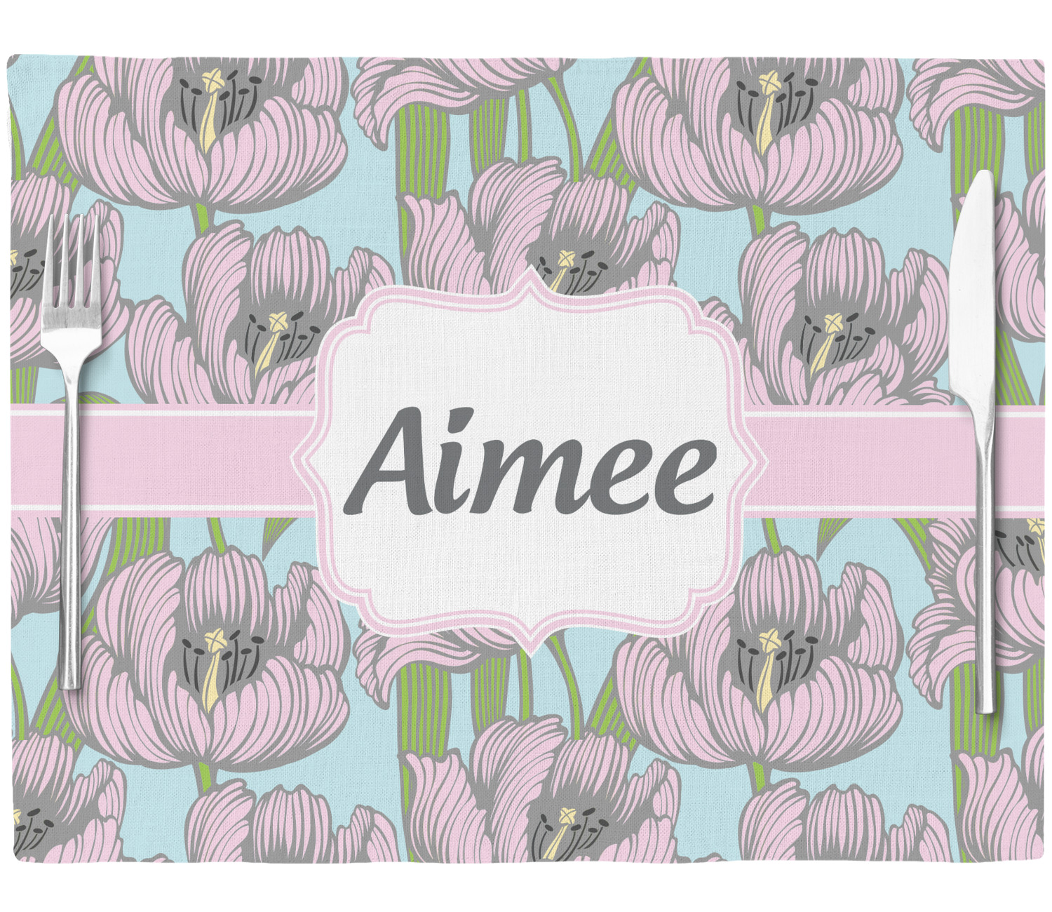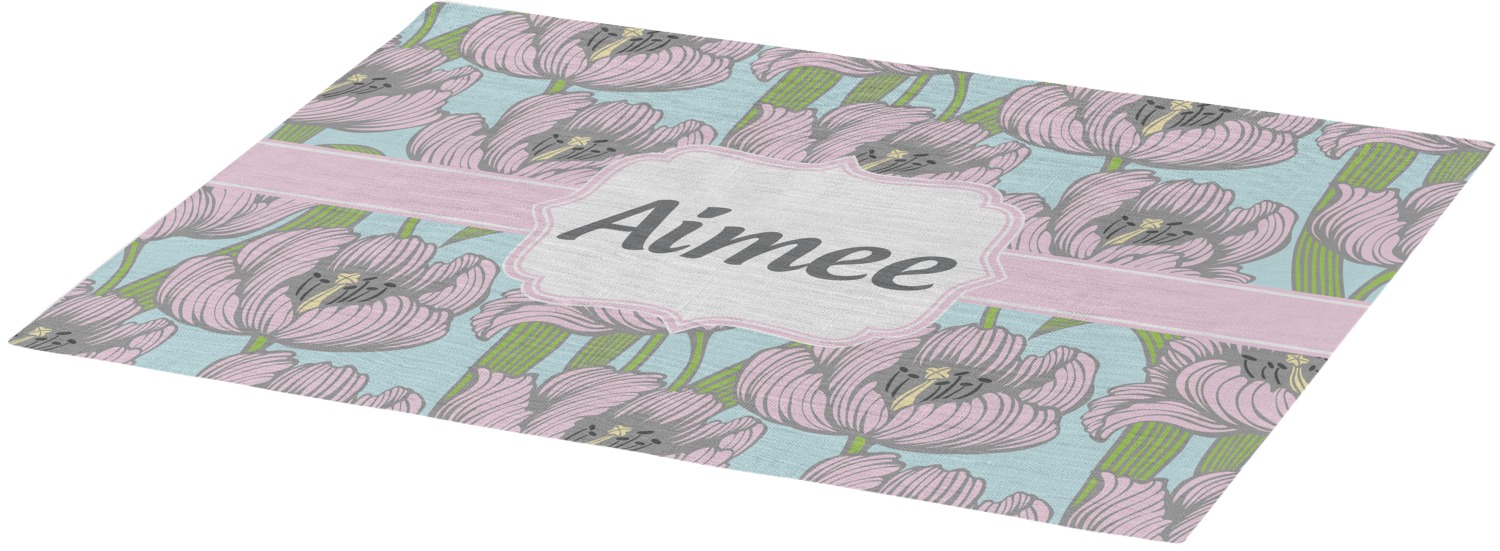 Each of our table mats are a poly twill material with woven burlap detailing. This creates a soft, quality placemat for us to fully print your personalized design across. The woven twill also adds a wrinkle-free surface to set your table! Each customizable placemat is a rectangle shape measuring at approximately 13 x 18 and printed here in the USA.