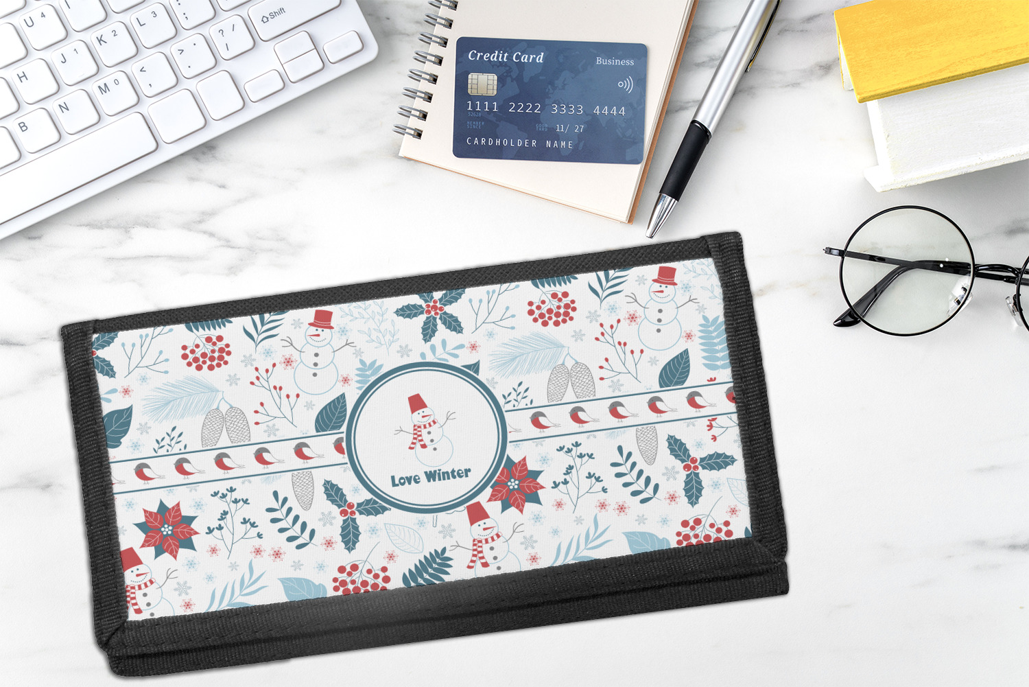 The checkbook cover is made of a durable canvas and the front flap is decorated with a vibrant design of your choosing. With 4 slots for credit cards or IDs, and 2 compartments for your checkbook register, cash, receipts, business cards, and more; this checkbook cover could easily double as a wallet.