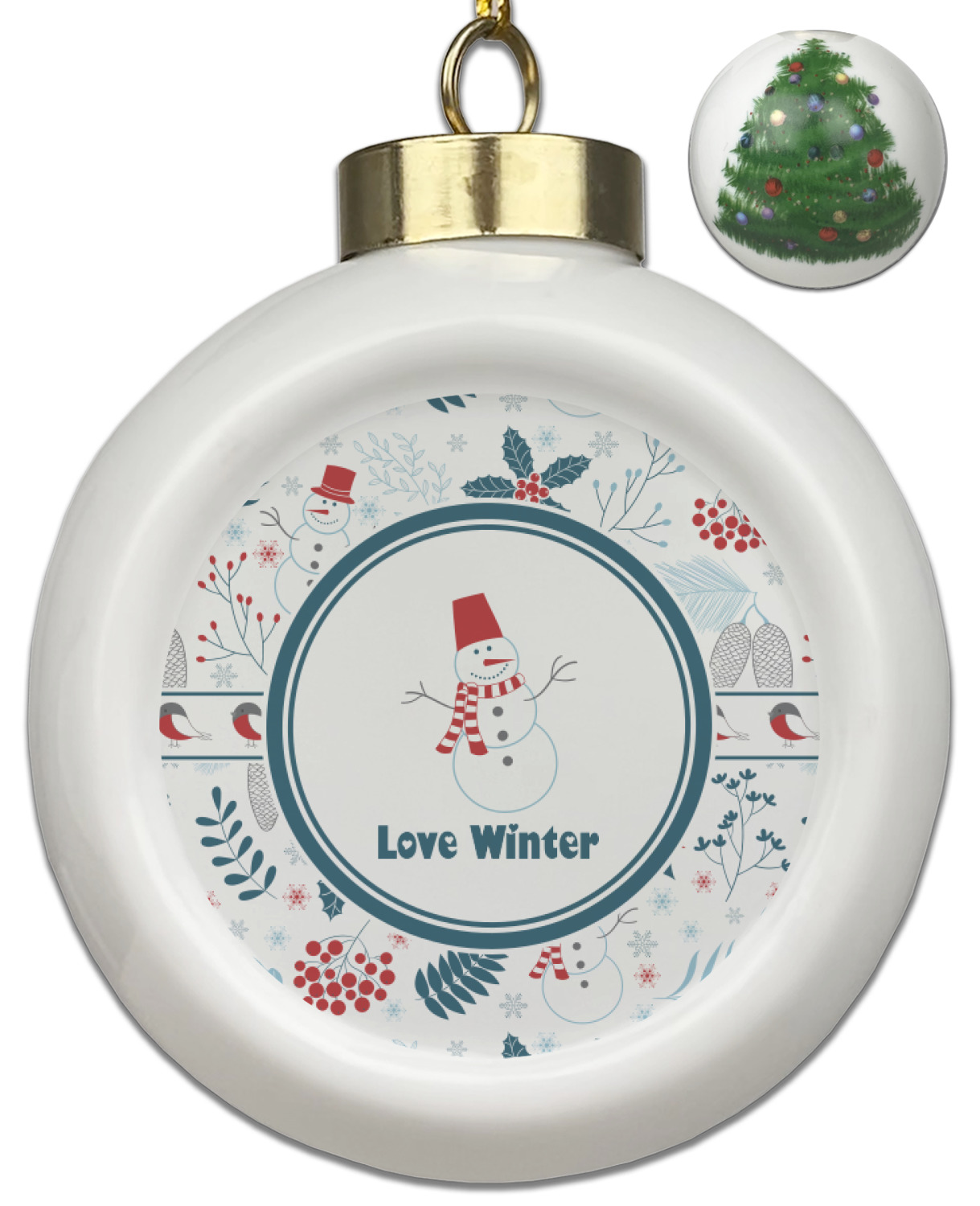 Our Christmas ornaments are a unique ceramic ball shape with a twist as it has a flat face to display your custom design! Select from one of our two design types - Christmas Tree or Poinsettia Garland - to adorn the curved back of your personal design. Each ornament measures 3H x 2.5W x 2D accompanied with a gold string accent for finishing touches to hang on your beautiful Christmas tree!