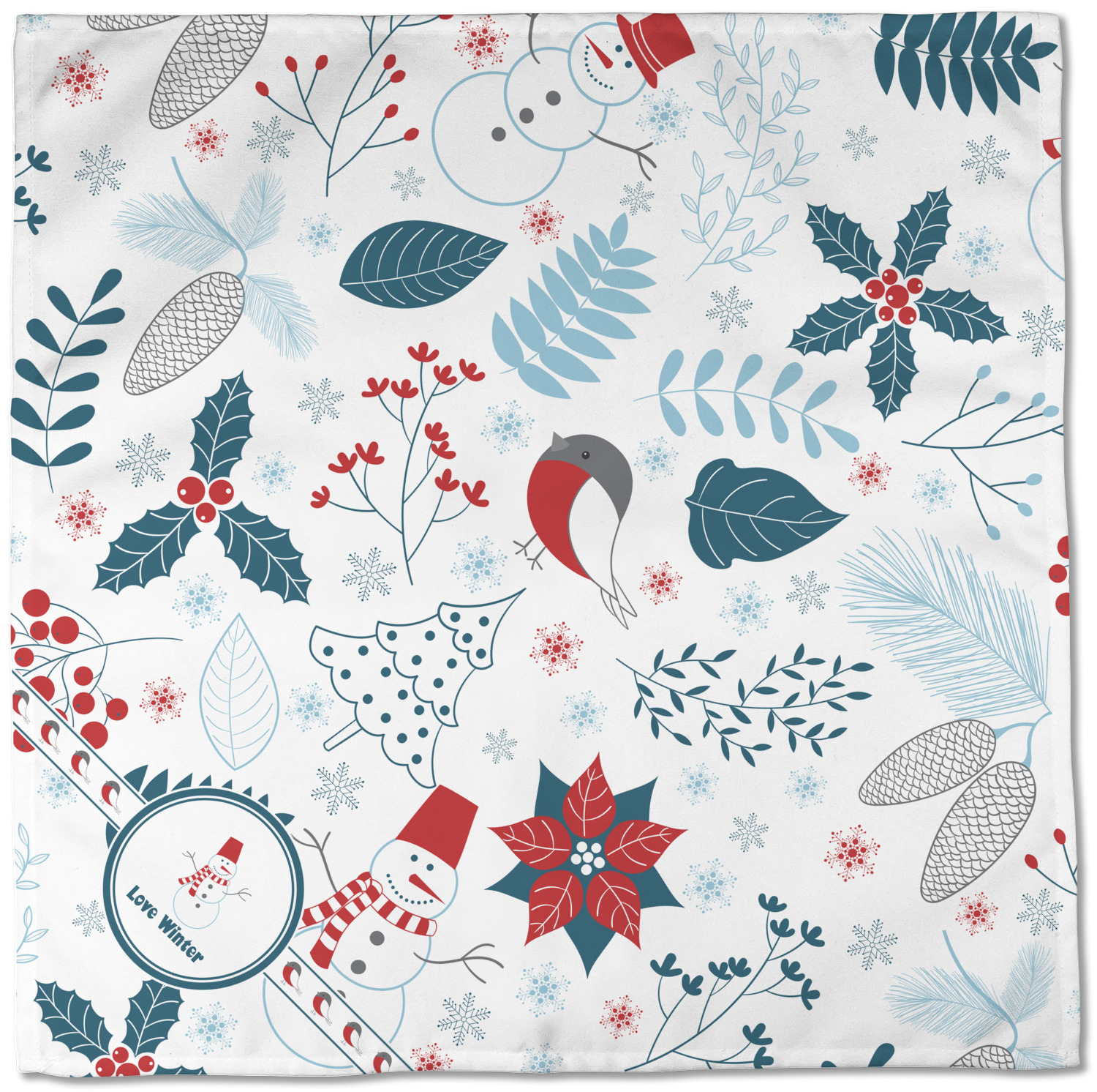 Do you love winter and are looking to winter designs to decorate with? This clean crisp winter design is a great reflection of winter white, with blues and a splash of red to give it color. The design has snow mans, winter birds, pine cones, berries, holly, leaves and snow flakes. Have a look the other designs that coordinate beautifully with this one and see how we created our own designs using the pattern maker and our favorite elements in this design.