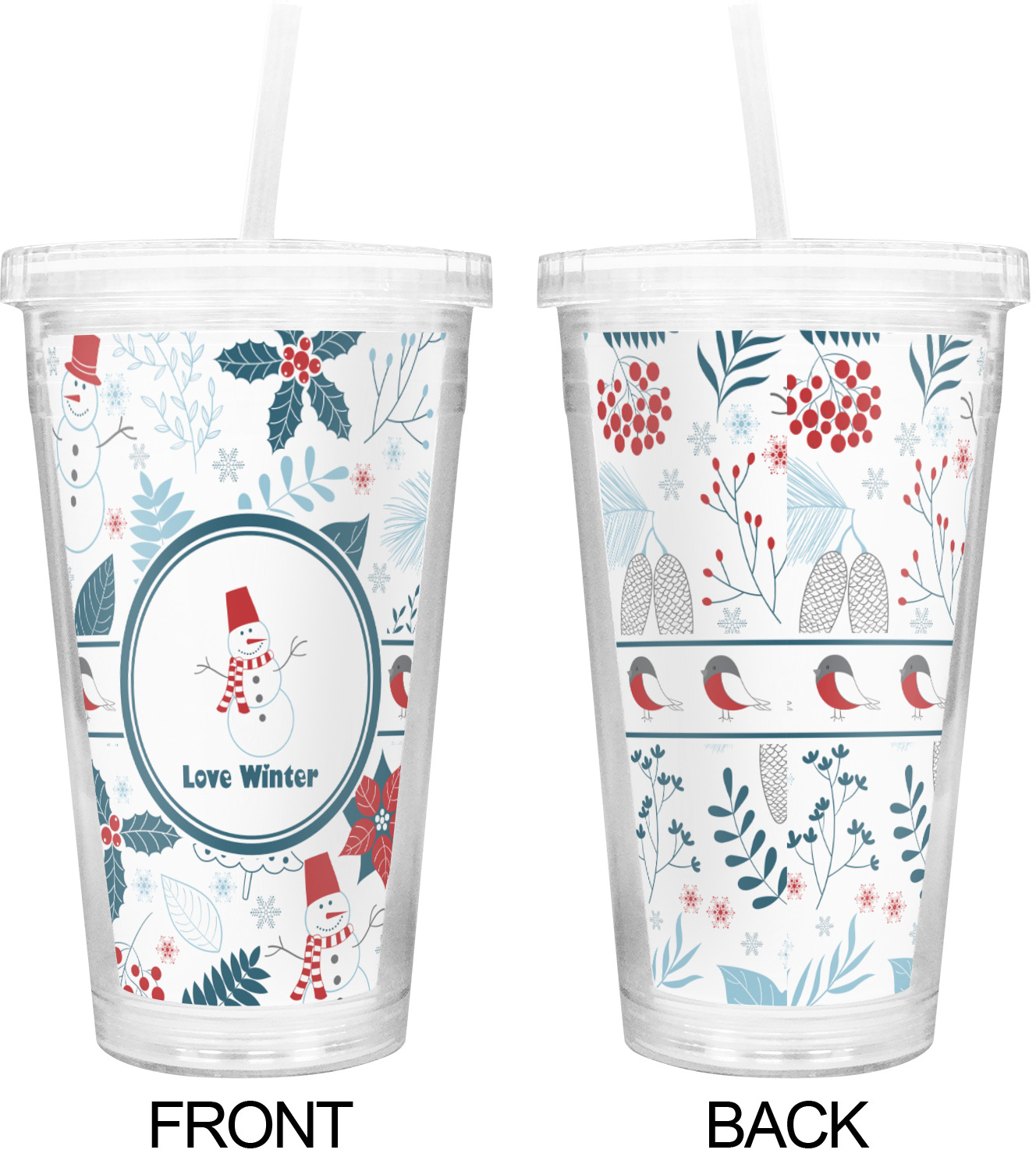 These tumblers are customized for you with a printed insert between the two walls of the cup. The lid screws on tight and helps to keep your drink cold.