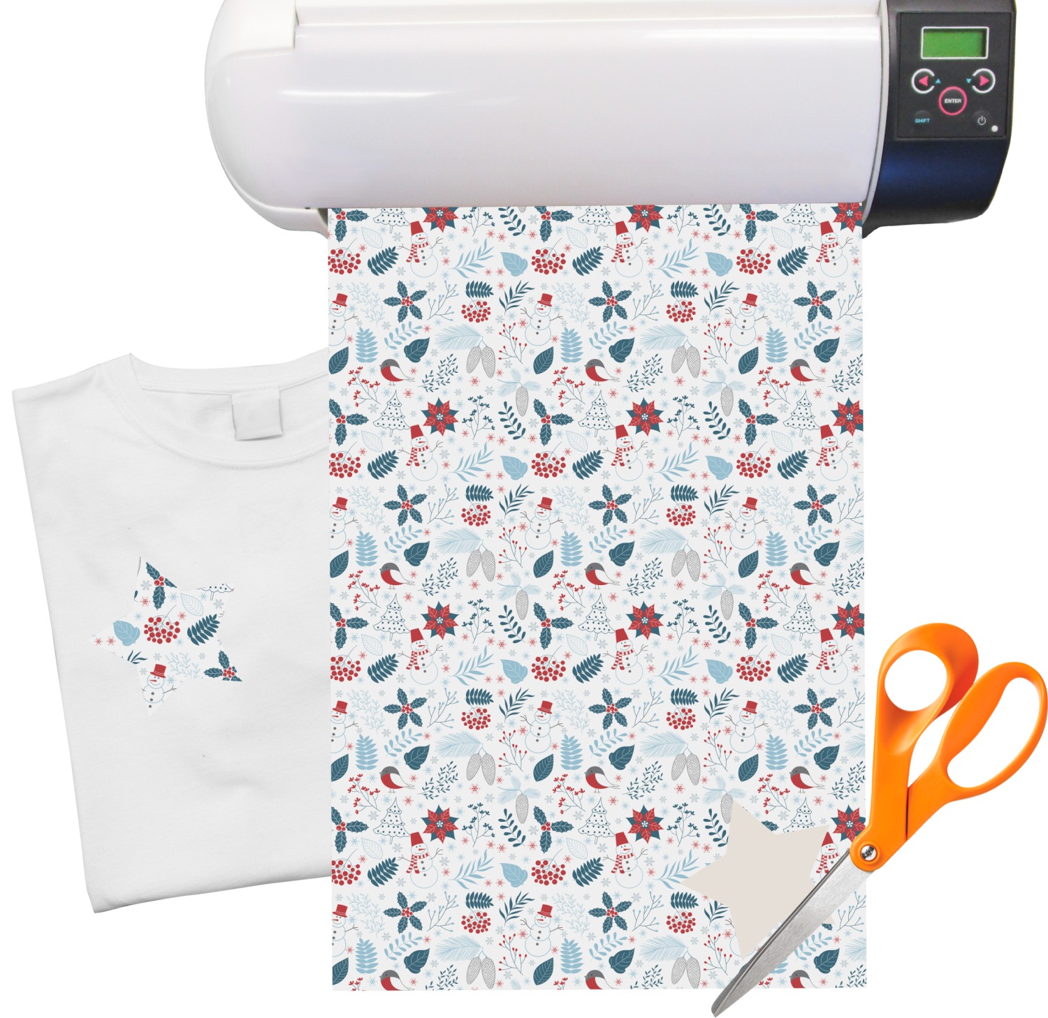 Do you love winter and are looking to winter designs to decorate with? This clean crisp winter design is a great reflection of winter white, with blues and a splash of red to give it color. The design has snow mans, winter birds, pine cones, berries, holly, leaves and snow flakes. Have a look the other designs that coordinate beautifully with this one and see how we created our own designs using the pattern maker and our favorite elements in this design.
