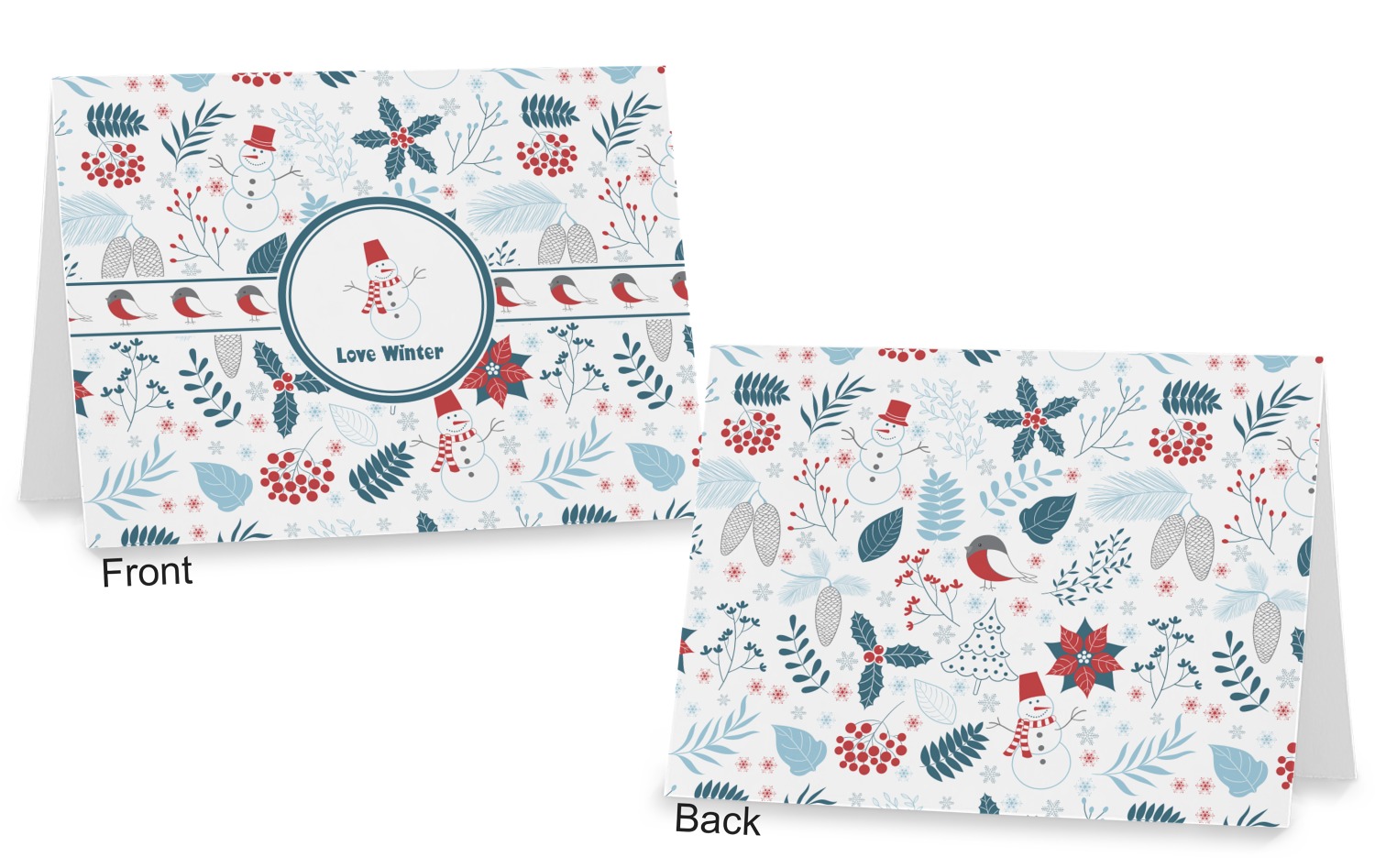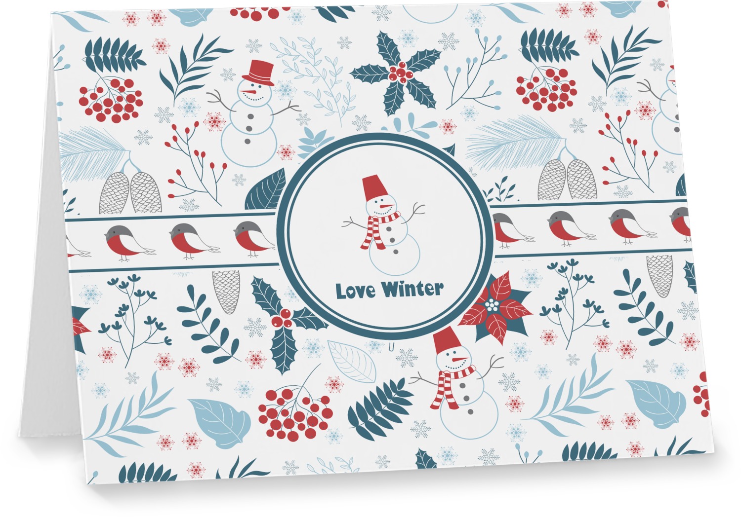 Do you love winter and are looking to winter designs to decorate with? This clean crisp winter design is a great reflection of winter white, with blues and a splash of red to give it color. The design has snow mans, winter birds, pine cones, berries, holly, leaves and snow flakes. Have a look the other designs that coordinate beautifully with this one and see how we created our own designs using the pattern maker and our favorite elements in this design.