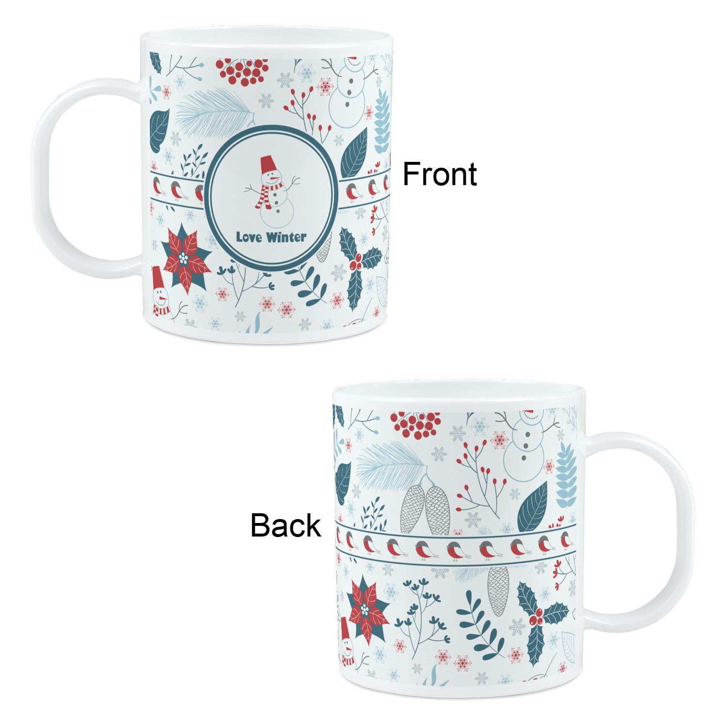 Do you love winter and are looking to winter designs to decorate with? This clean crisp winter design is a great reflection of winter white, with blues and a splash of red to give it color. The design has snow mans, winter birds, pine cones, berries, holly, leaves and snow flakes. Have a look the other designs that coordinate beautifully with this one and see how we created our own designs using the pattern maker and our favorite elements in this design.