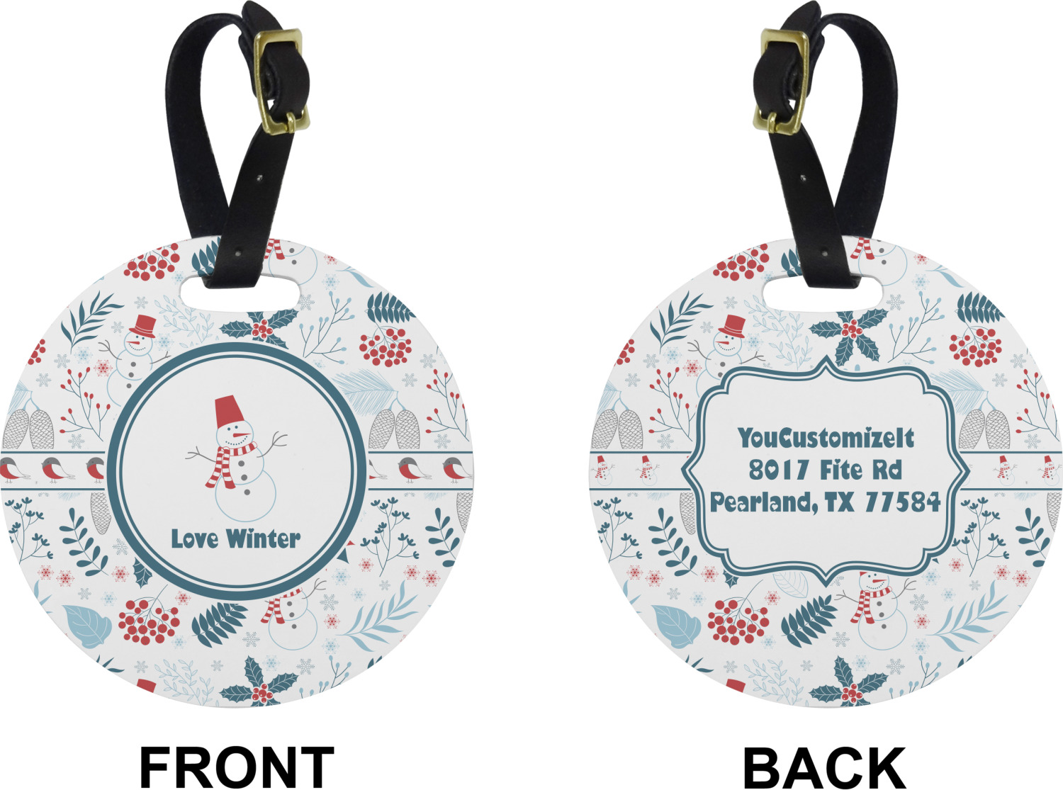 These cute luggage tags are made of a fiber-reinforced, UV-resistant plastic, making them waterproof and durable enough for both everyday use and the rugged adventures of any traveler! A leather strap with holes and a buckle is included with your purchase and can be used to attach your custom luggage tag to any suitcase, backpack, or duffel bag. You can design these travel tags as you wish; your customization will be displayed across the front, while the back will show as little or as much personal information as you want.