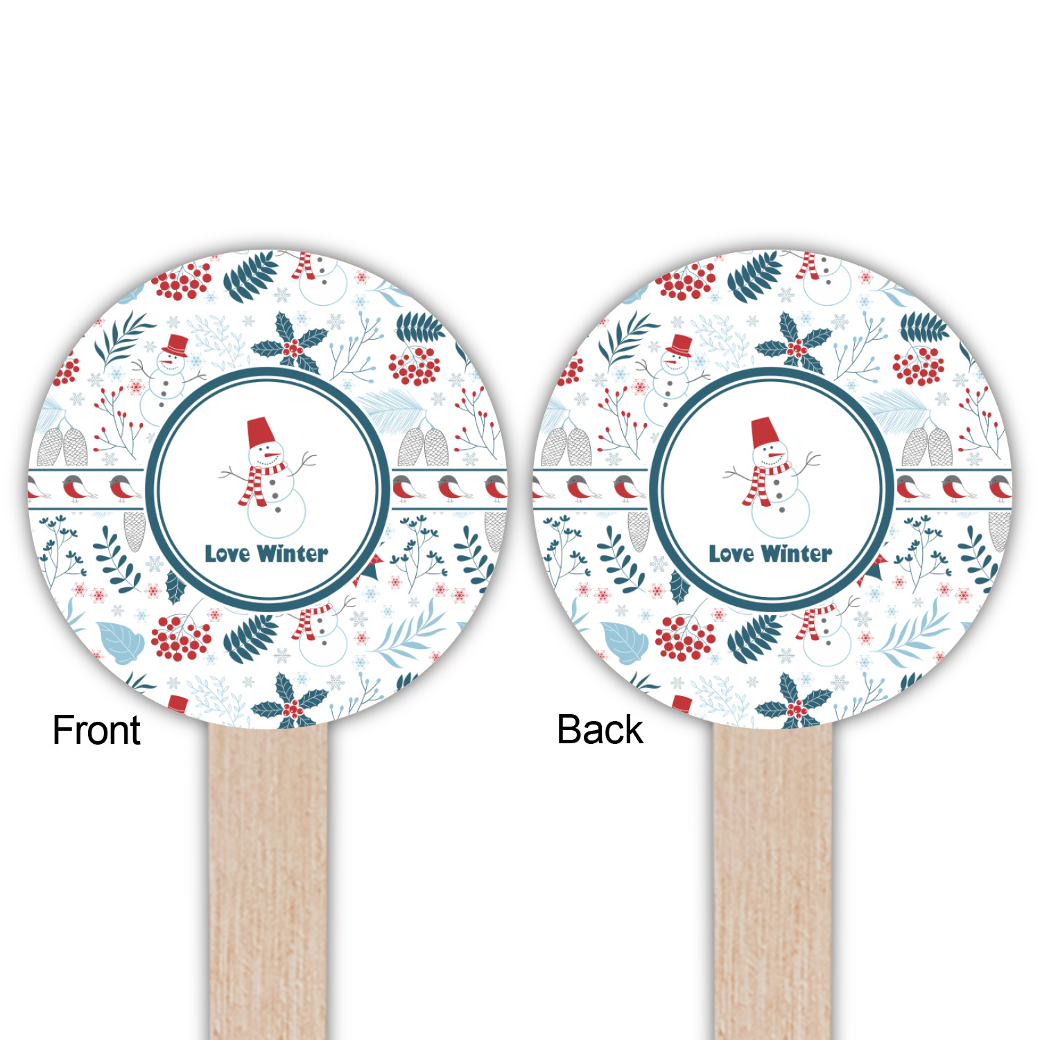 We chose a white ribbon with robins on the ribbon, a simple round label with a snowman and the words "Love Winter" for the personalization