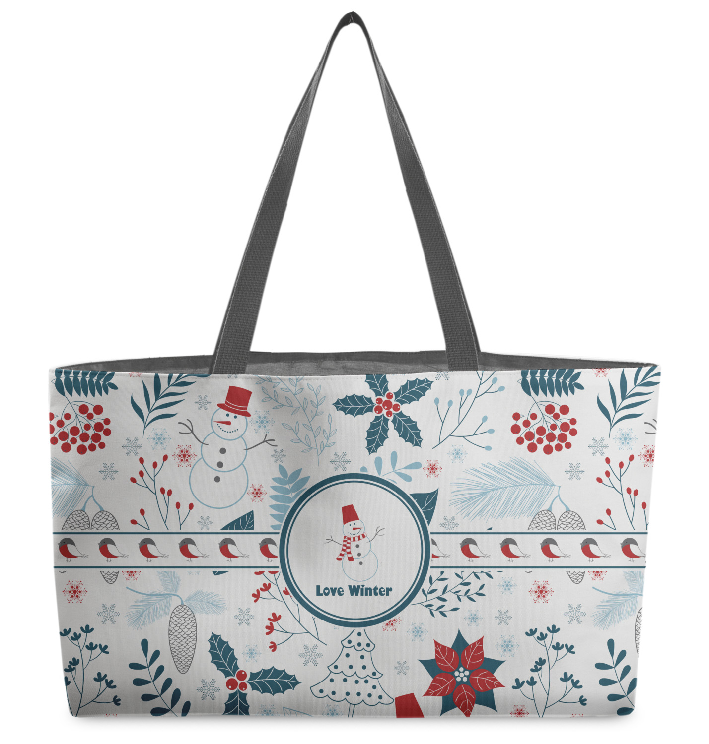 These beach totes are handmade here in the USA. Fabric is printed with your design. The tote is then sewn from the fabric pieces, lining and handles added.
