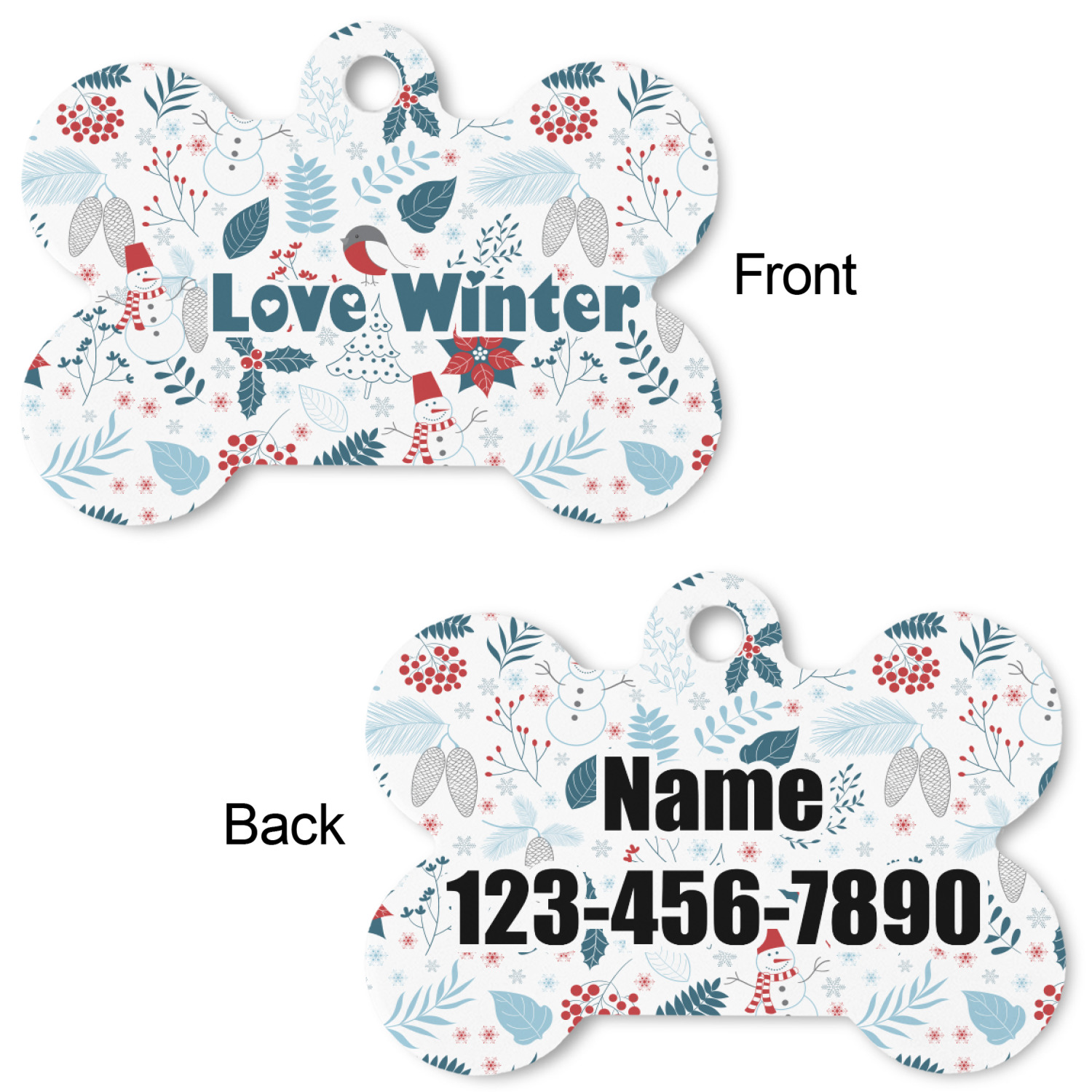 Shaped like a bone and made from aluminum, these tags are available in 2 different sizes.