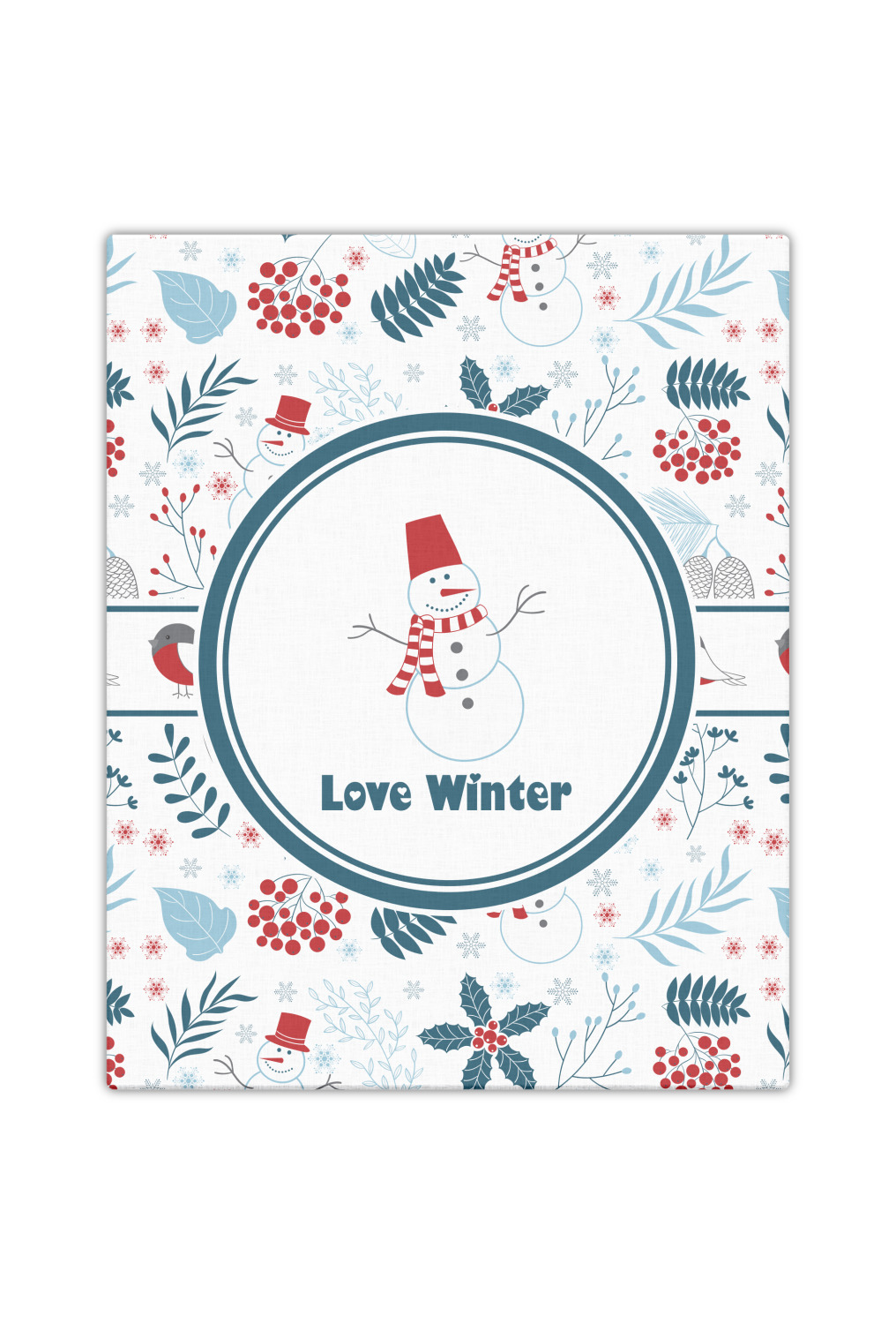 Do you love winter and are looking to winter designs to decorate with? This clean crisp winter design is a great reflection of winter white, with blues and a splash of red to give it color. The design has snow mans, winter birds, pine cones, berries, holly, leaves and snow flakes. Have a look the other designs that coordinate beautifully with this one and see how we created our own designs using the pattern maker and our favorite elements in this design.
