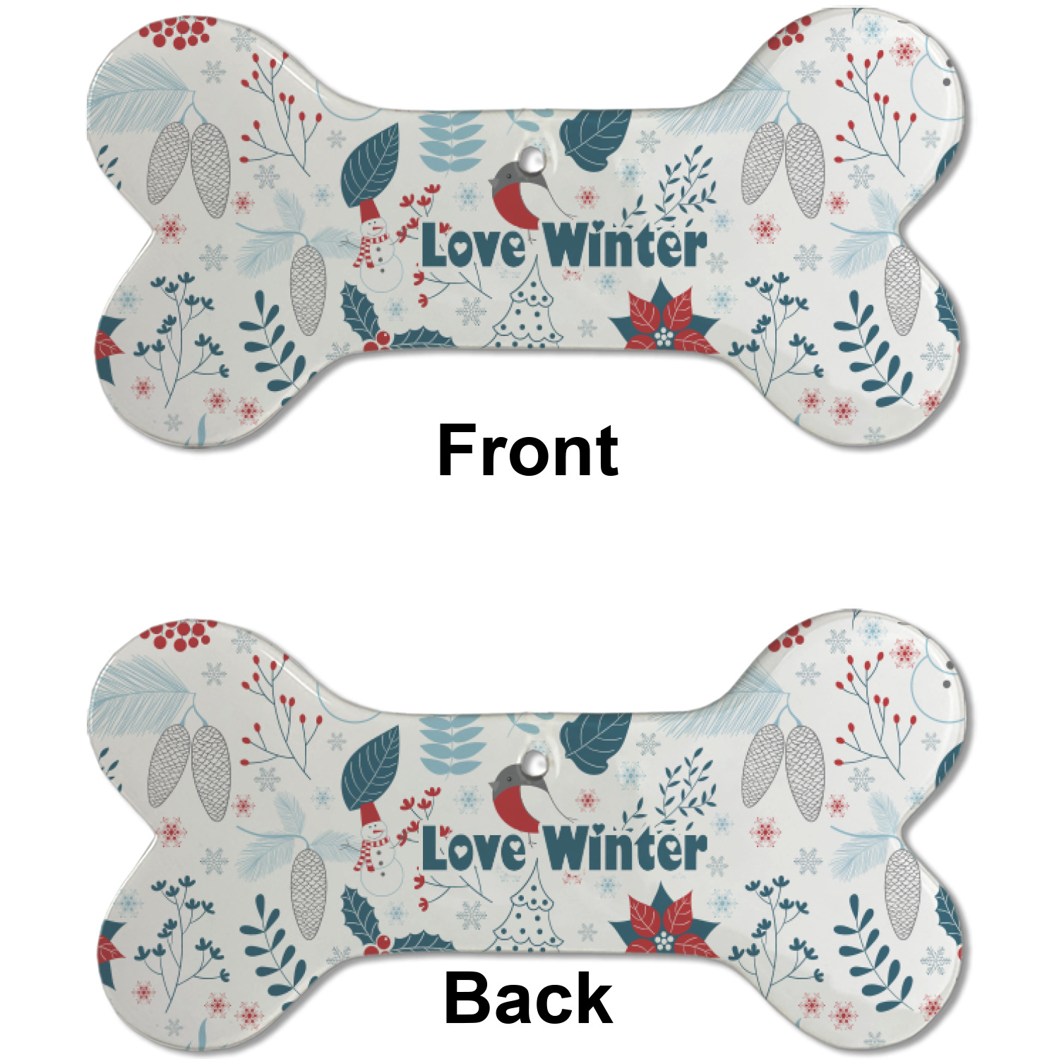 Our dog Christmas ornaments are a ceramic material with a bone-shaped structure hung horizontally. We offer two printing styles to personalize your furry friend's ornament! Choose a one-sided printing, perfect for wall decor, memorial accessory, or doghouse nameplate! Create a double-sided ornament perfect for adorning the Christmas tree. Each dog bone ornament is approximately 4.75" x 2.25" and is printed here in the USA.