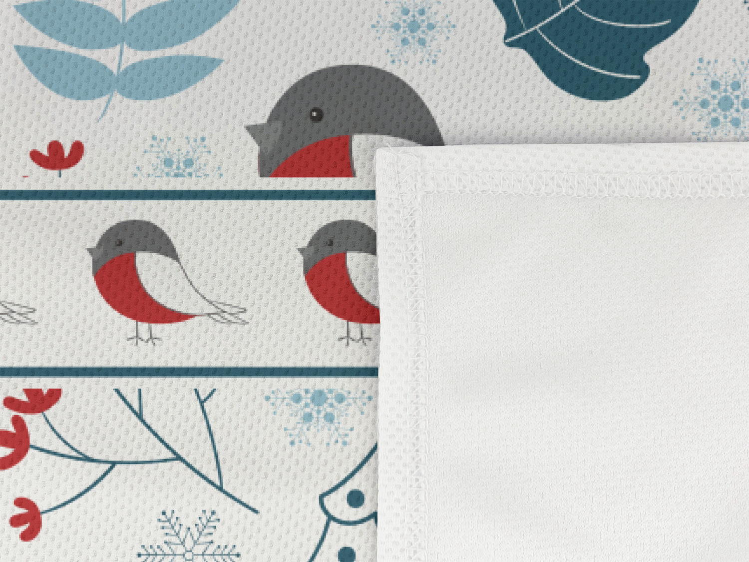 Do you love winter and are looking to winter designs to decorate with? This clean crisp winter design is a great reflection of winter white, with blues and a splash of red to give it color. The design has snow mans, winter birds, pine cones, berries, holly, leaves and snow flakes. Have a look the other designs that coordinate beautifully with this one and see how we created our own designs using the pattern maker and our favorite elements in this design.