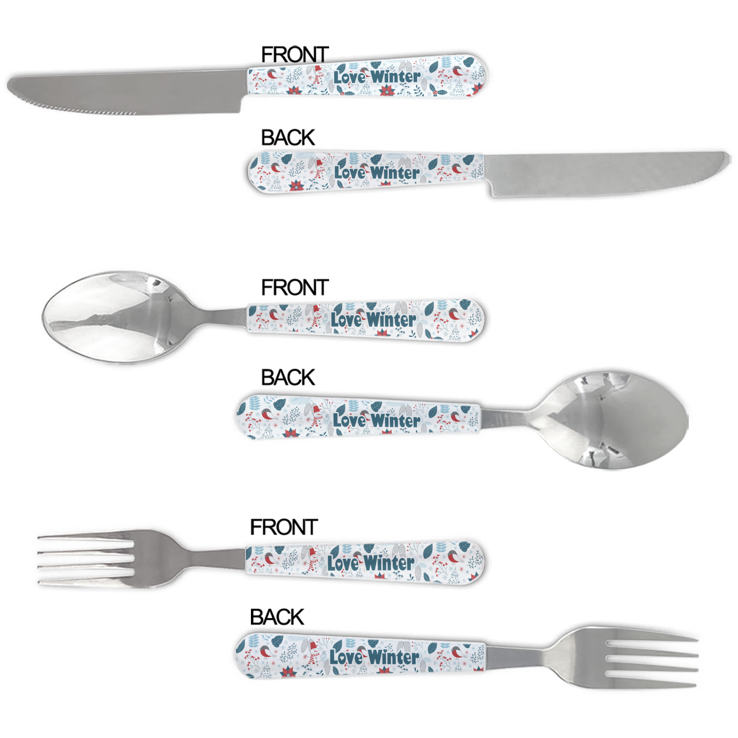 We print your customization on the handles, making these cutlery sets unique to you.
