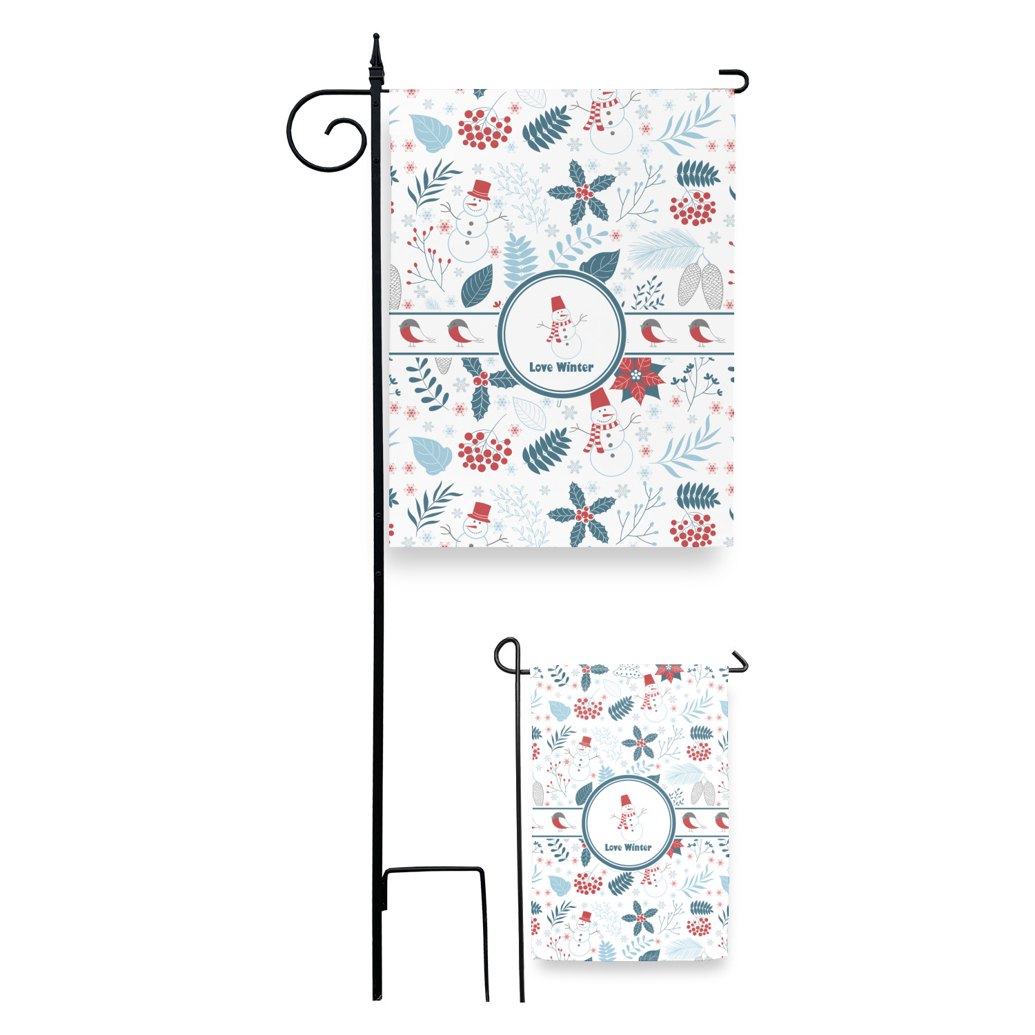 These custom garden flags are made of a durable, double-ply, polyester weave, allowing them to withstand the elements year round. The small flags measure at approximately 12 by 18 inches. The large flags measure out to 28 by 37 inches. You can order these decorative flags with your customization printed on the front only, or the front and back.