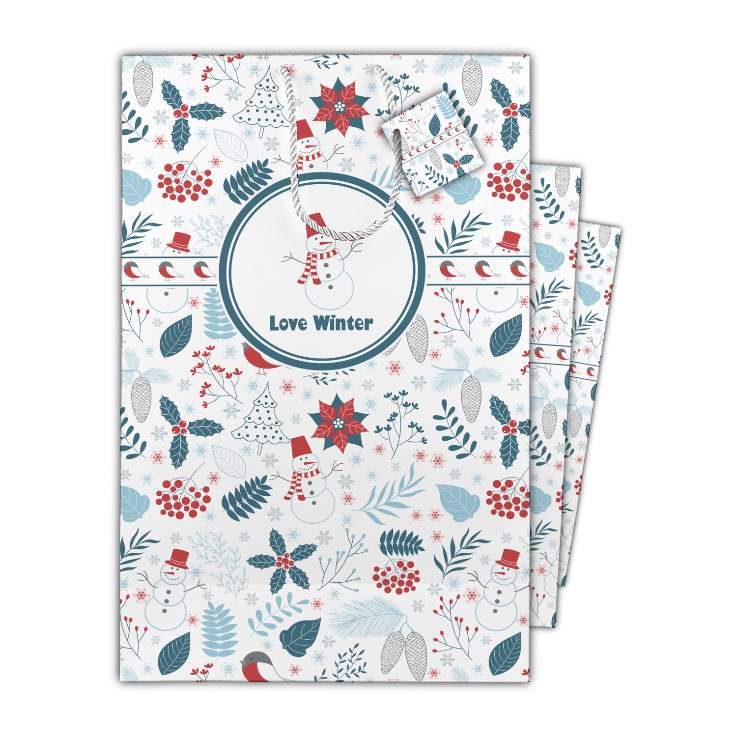 We chose a white ribbon with robins on the ribbon, a simple round label with a snowman and the words "Love Winter" for the personalization