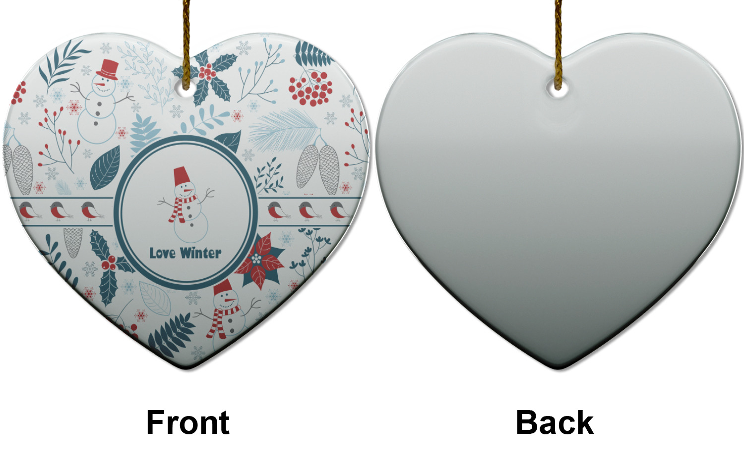 Have a happy holiday and share the joy of Christmas with your loved ones by hanging up personalized ceramic ornaments! Ornaments add a touch of who you are and the things you love onto the Christmas tree! Create custom ornaments for the kids and have them hang up their own star with their name, or pay remembrance this holiday to missed loved ones with our ceramic heart ornament. Browse many of our unique designs and customize them the way you'd like! From monograms, logos, and patterns, we have it all! You can even upload a photo of your family for us to print onto the ornament! The possibilities are endless!