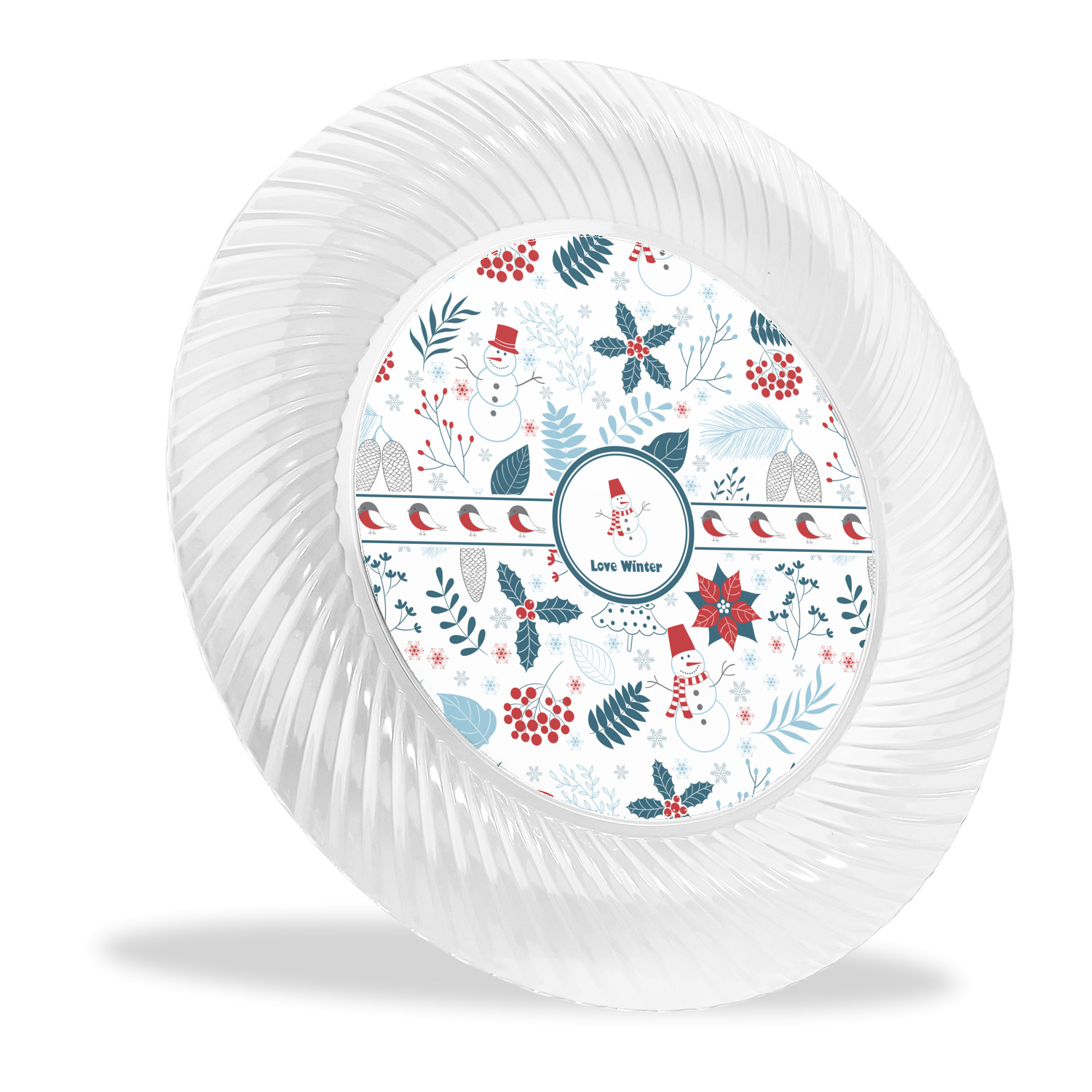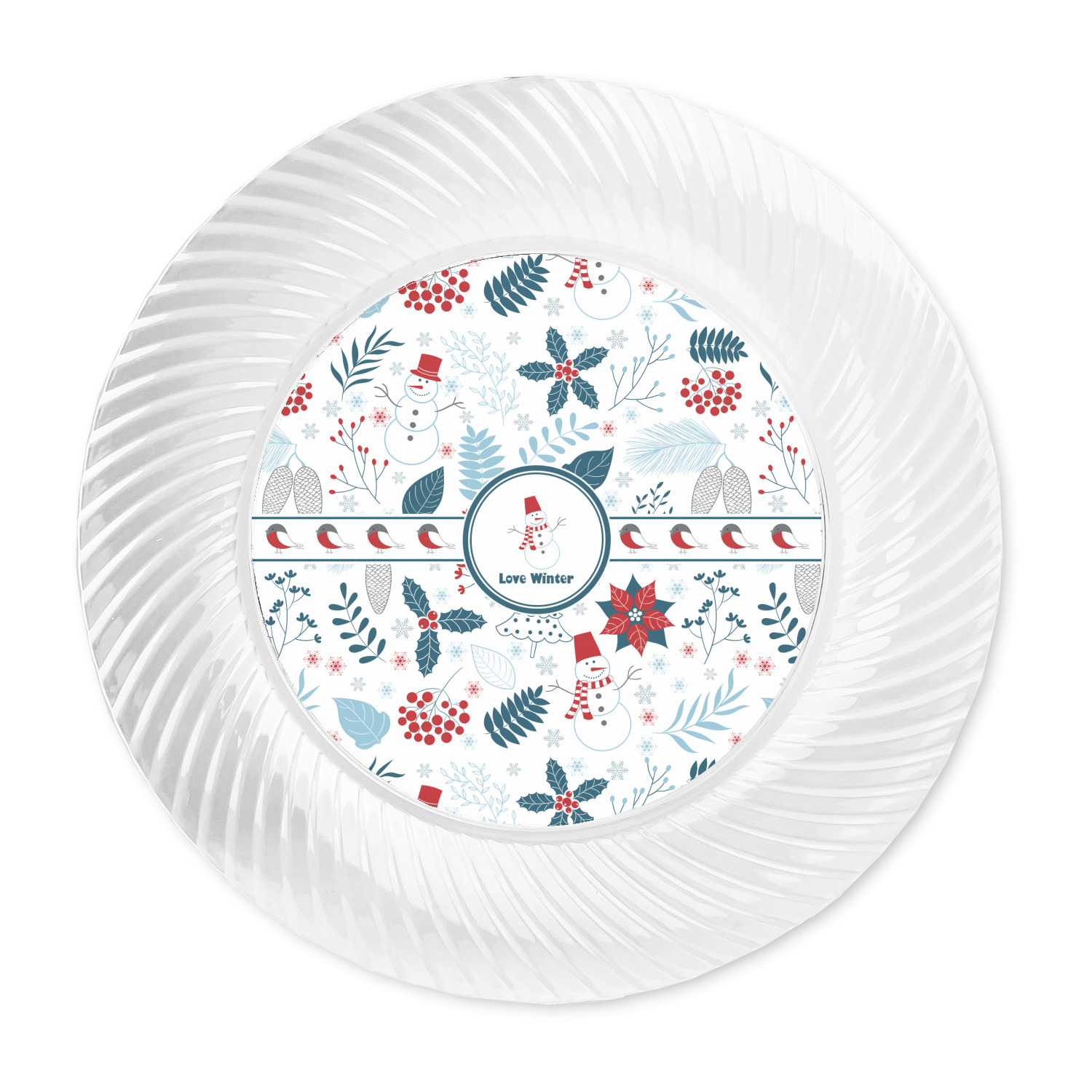 Made from a beautiful clear plastic plate as a base, your design is printed to the underside of the plate. The outside of these disposable plates has a classic swirl texture to it for a high quality look and feel.