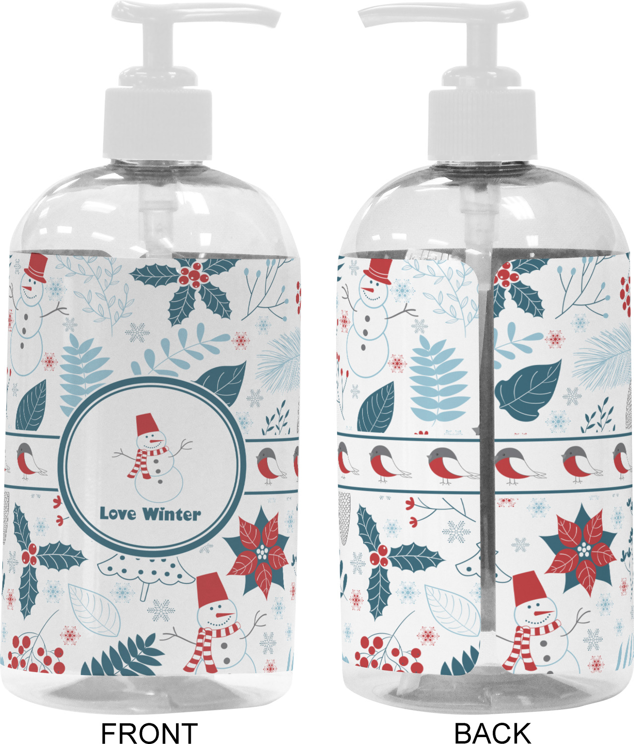 We adhere and wrap your custom printed design around the clear plastic bottle; there is a slight gap at the back for you to see the liquid level. Your design is printed on high gloss vinyl with eco-solvent inks and completely waterproof and will not fade or deteriorate over time. The vinyl is machine cut and adhered by hand to the clear plastic bottle.