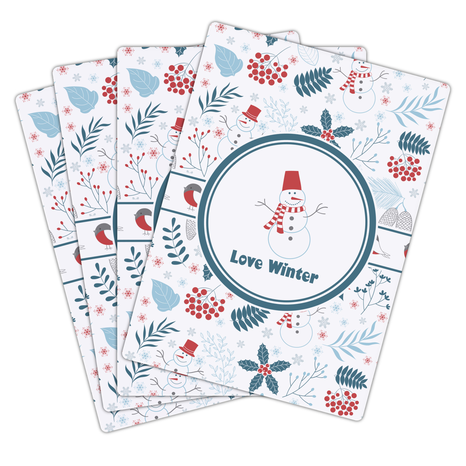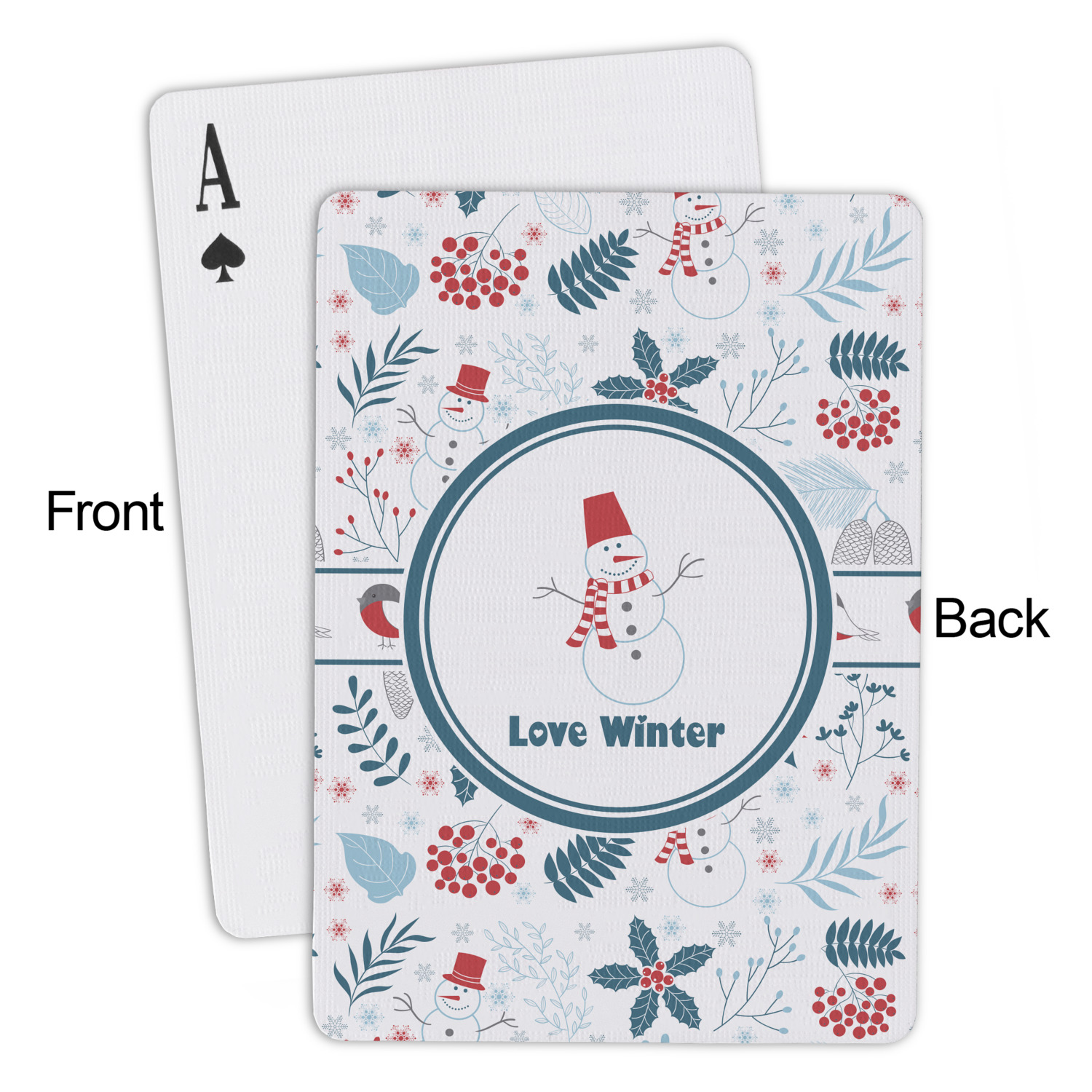 The customization / personalization is printed on the back side. The playing cards have a low gloss coating on both sides. The cards are packaged in a clear plastic box.