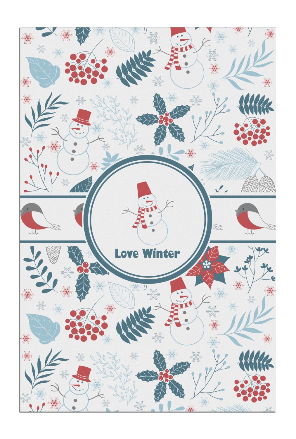 Do you love winter and are looking to winter designs to decorate with? This clean crisp winter design is a great reflection of winter white, with blues and a splash of red to give it color. The design has snow mans, winter birds, pine cones, berries, holly, leaves and snow flakes. Have a look the other designs that coordinate beautifully with this one and see how we created our own designs using the pattern maker and our favorite elements in this design.