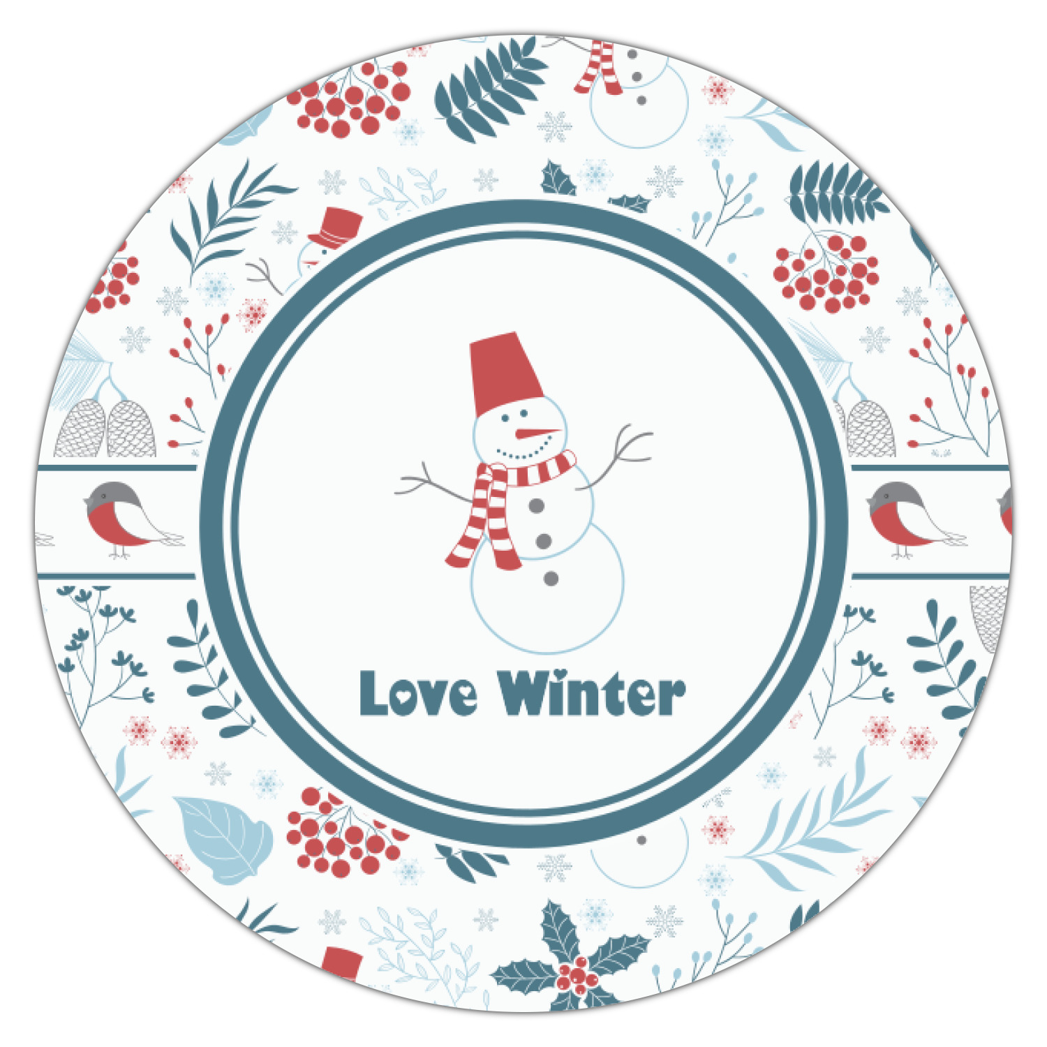 We chose a white ribbon with robins on the ribbon, a simple round label with a snowman and the words "Love Winter" for the personalization