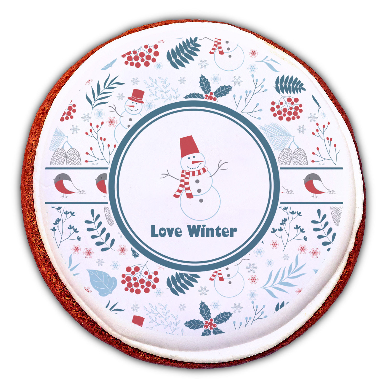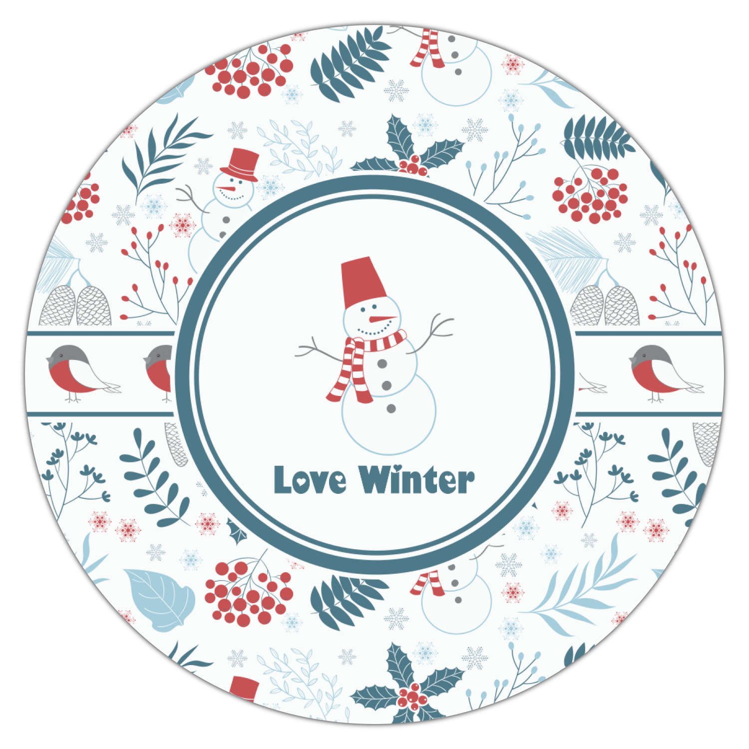 Do you love winter and are looking to winter designs to decorate with? This clean crisp winter design is a great reflection of winter white, with blues and a splash of red to give it color. The design has snow mans, winter birds, pine cones, berries, holly, leaves and snow flakes. Have a look the other designs that coordinate beautifully with this one and see how we created our own designs using the pattern maker and our favorite elements in this design.