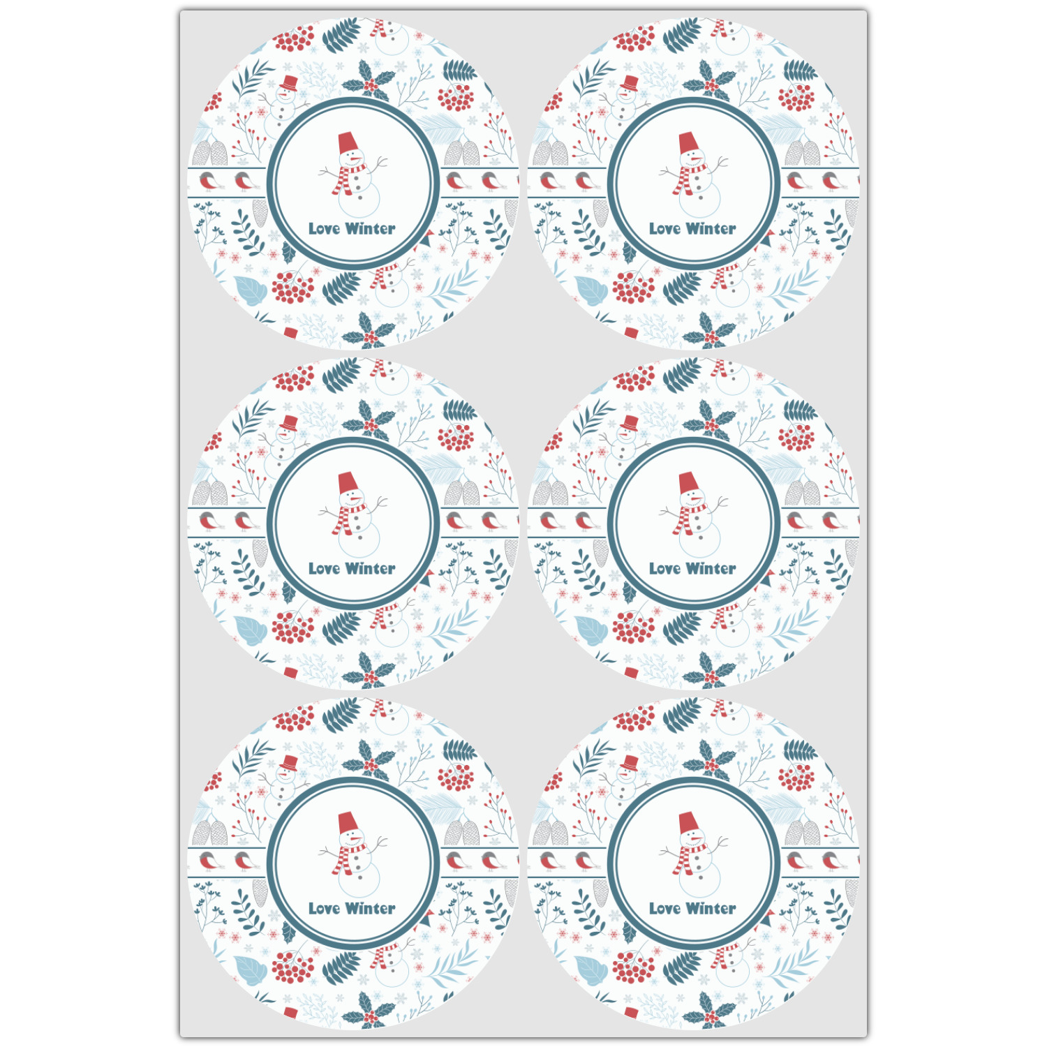 We chose a white ribbon with robins on the ribbon, a simple round label with a snowman and the words "Love Winter" for the personalization