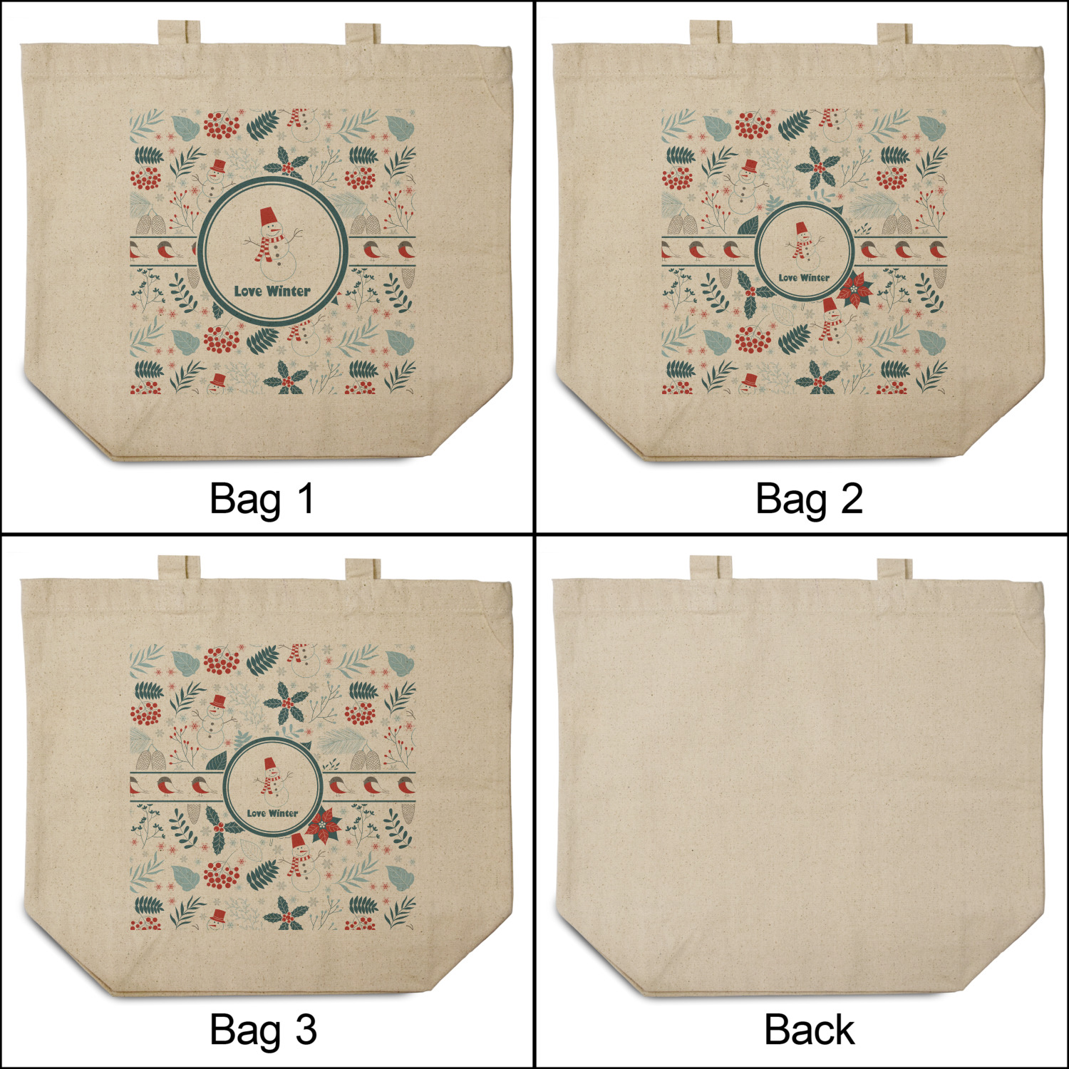 These cotton totes are washable and easy to care for, and they can be folded flat for storage. Your artwork, logo, or photo is printed in full color directly on the cotton tote in the front.