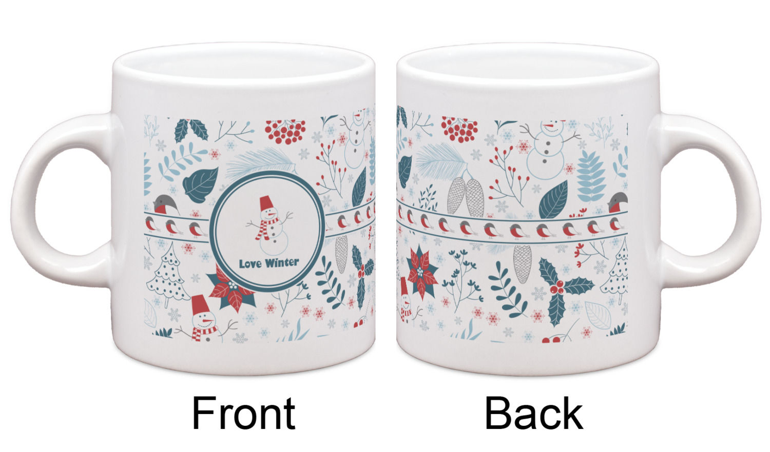 Each of our espresso mugs is a ceramic material sure to keep your drink warm. Personalize one cup for yourself, or order a set of 4! Its the perfect little gift for any coffee lover! We carry two sizes for you to personalize - 3 oz. (approx. 3.25" x 2.325" x 2.625") or 6 oz. (approx. 4" x 2.9" x 2.9"). Our 3 oz. mug is perfect for that single shot espresso while our 6 oz. mug can be your next favorite cappuccino cup holding two shots of espresso!