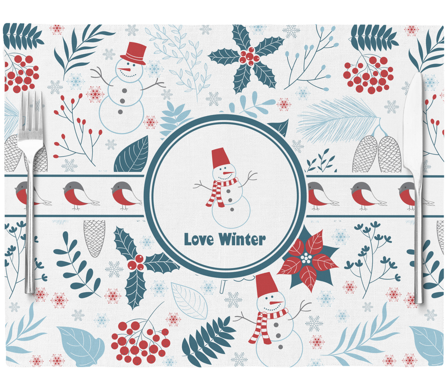 Do you love winter and are looking to winter designs to decorate with? This clean crisp winter design is a great reflection of winter white, with blues and a splash of red to give it color. The design has snow mans, winter birds, pine cones, berries, holly, leaves and snow flakes. Have a look the other designs that coordinate beautifully with this one and see how we created our own designs using the pattern maker and our favorite elements in this design.