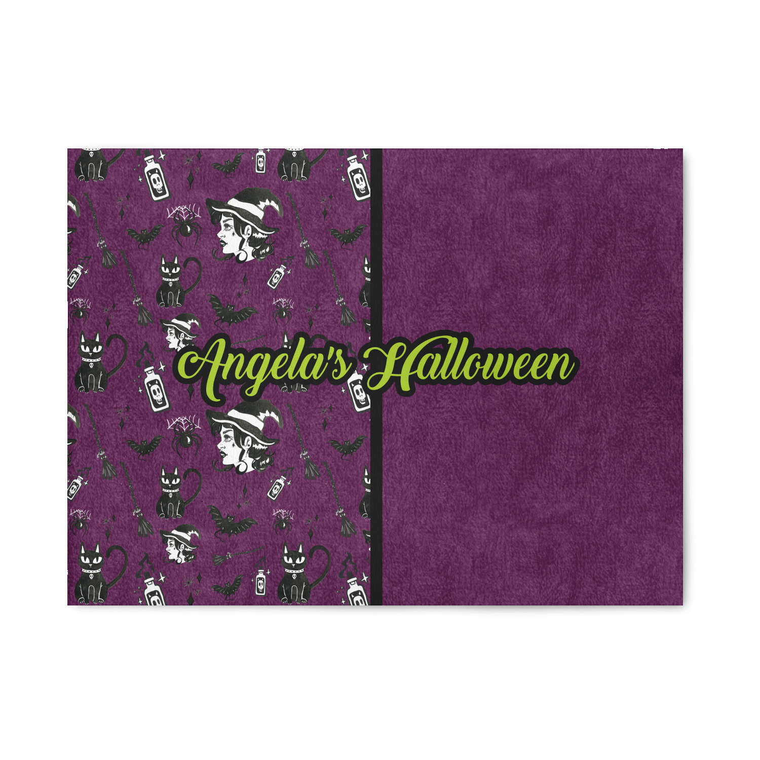 This fun design has a dark violet velvet looking (not real velvet - digital) background. On top of the digital velvet is a pattern full of beautiful illustrations of witches, potions, black cats, bats, and more. The main design is split in two with this background on one side and a plain violet digital velvet on the other. Your personalization is placed in the bottom right corner to give a lovely asymmetrical look. The coordinating design has a gorgeous large illustration of a witch with a little saying above and below her that says "I'll put a spell on you."